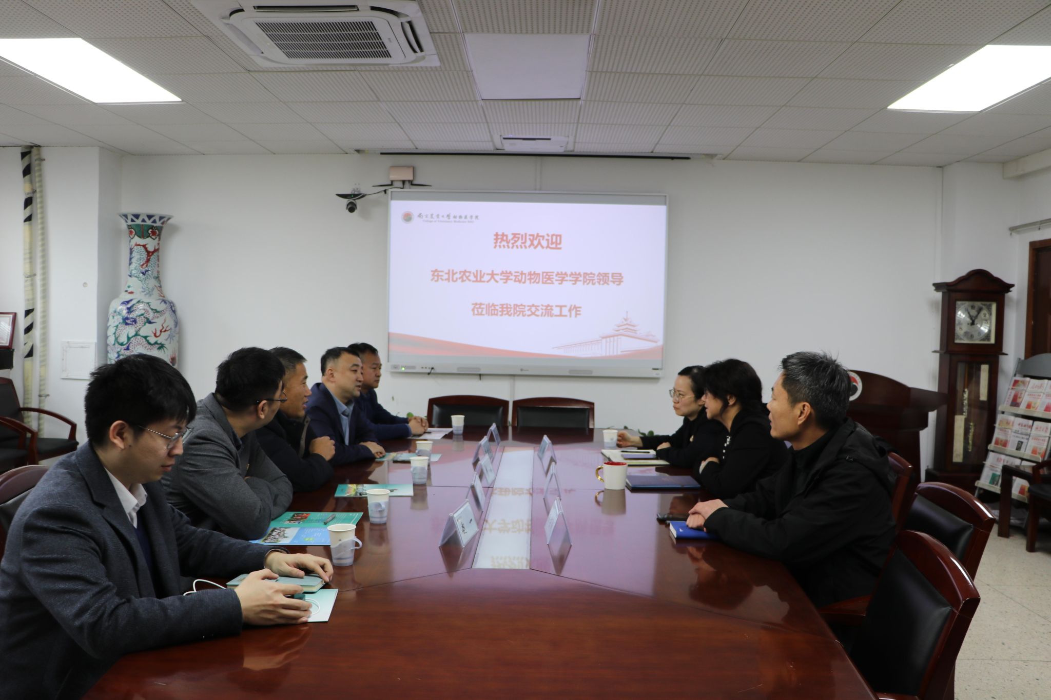 3月7日,动物医学学院党委书记张铁,院长李金龙,以及学院教师张志刚教授、张子威教授,赵一副教授一行5人赴南京农业大学动物医学院进行调研交流。南京农业大学动物医学院党委书记姜岩、党委副书记李云锋、副院长刘斐、办公室主任江海宁出席调研座谈会。
