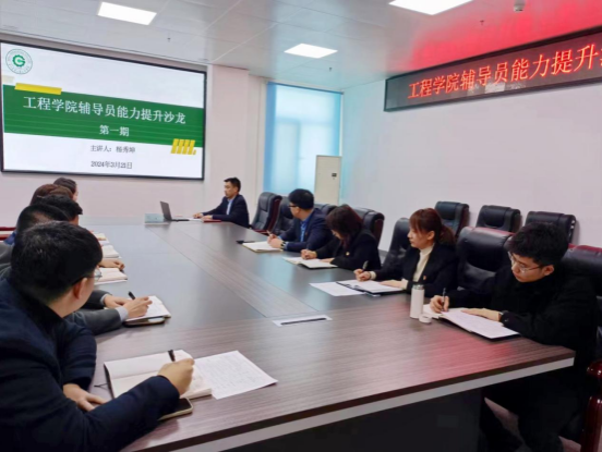 为深入贯彻落实学校“学习培训年”“强化管理年”两个三年行动部署,切实加强学院辅导员队伍建设,搭建辅导员学习交流平台,工程学院于3月21日在工程实训中心451会议室举办了第一期辅导员能力提升沙龙。学院副处级辅导员杨秀坤为本次沙龙主讲人,学院全体辅导员参加了会议,培训由学院党委副书记孙涛主持。