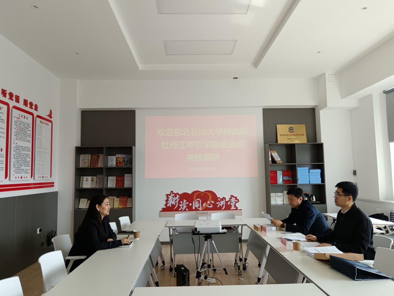 为加强我省高校统战工作交流,近日,哈尔滨理工大学党委常委、统战部部长姜国玉,东北石油大学统战部部长徐广洲、牡丹江师范学院统战部部长陈晓东到东北农业大学调研。东北农业大学统战部副部长冯丹接待调研。
