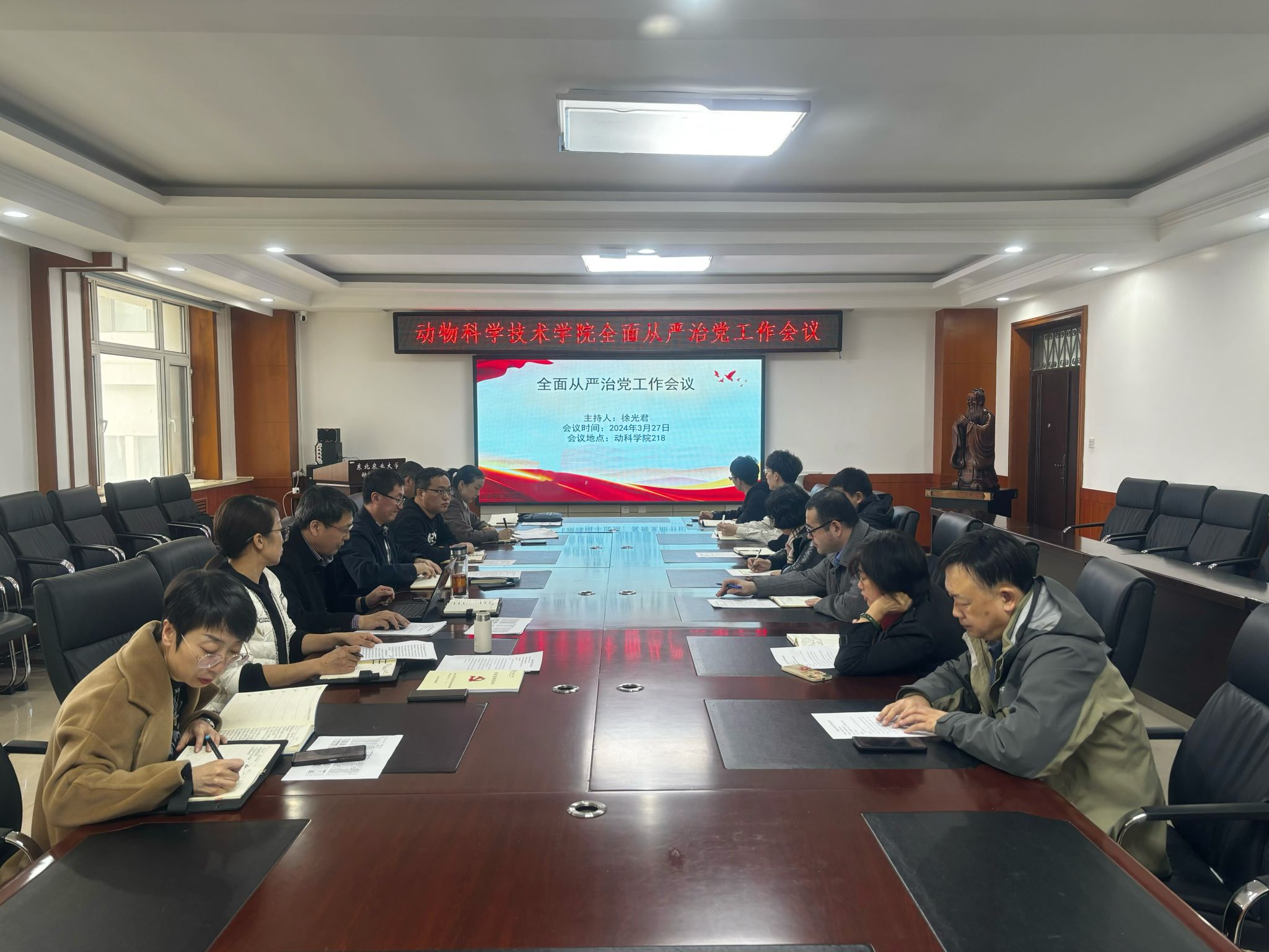 3月27日,动物科学技术学院召开2024年全面从严治党工作会议,学院领导班子成员、各党支部书记、全体辅导员参加会议,会议由学院党委书记徐光君主持。