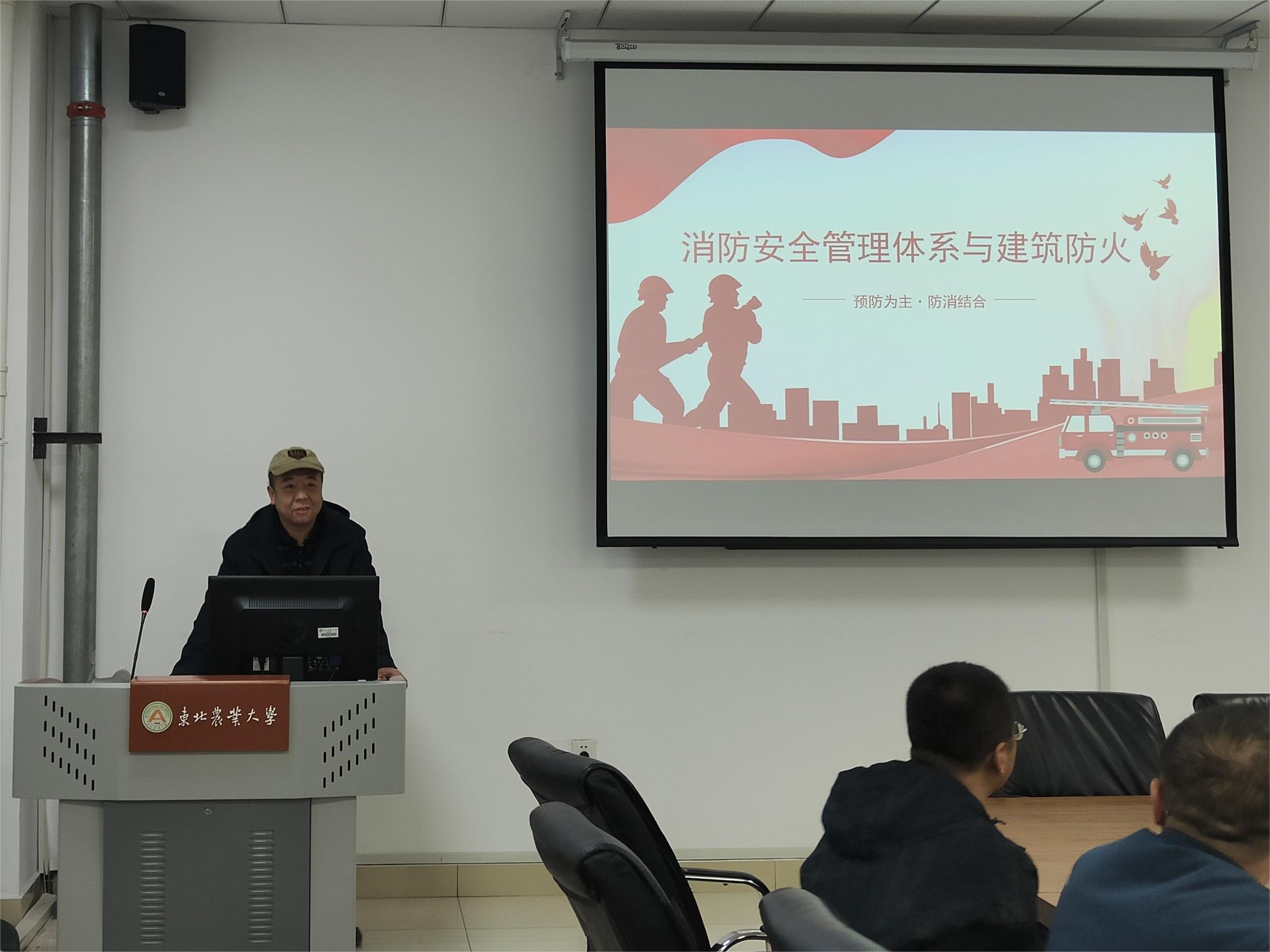 保卫处消防科科长王爱众讲解了消防安全管理体系、火灾危害、消防设施的工作原理等消防知识,重点介绍了实验室消防安全细节以及发生火灾时的逃生技能。
