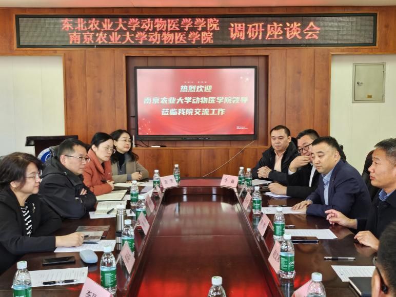 4月8日,南京农业大学动物医学院党委书记姜岩,主持工作副院长平继辉,副院长曹瑞兵、刘斐,专业教师马喆、汤芳、李昱辰一行7人到动物医学学院调研并开展座谈,调研座谈会在临床楼229会议室举行,动物医学学院领导班子,教师代表张志刚、张子威等出席会议。座谈会由学院党委书记张铁主持。