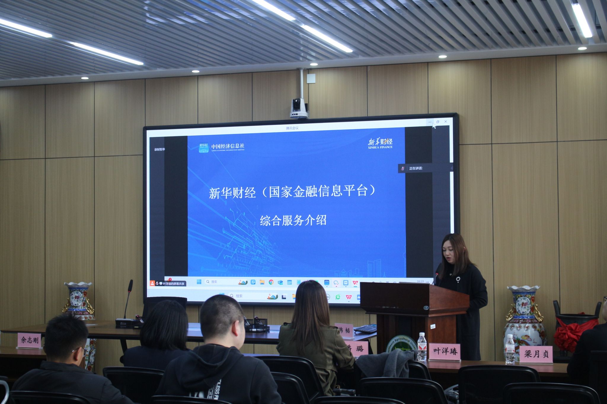 会上,韩韬介绍了新华财经的整体情况,叶洋瑃对国家金融信息平台新华财经专业终端产品进行了功能演示,并对师生关注的模块进行详尽讲解