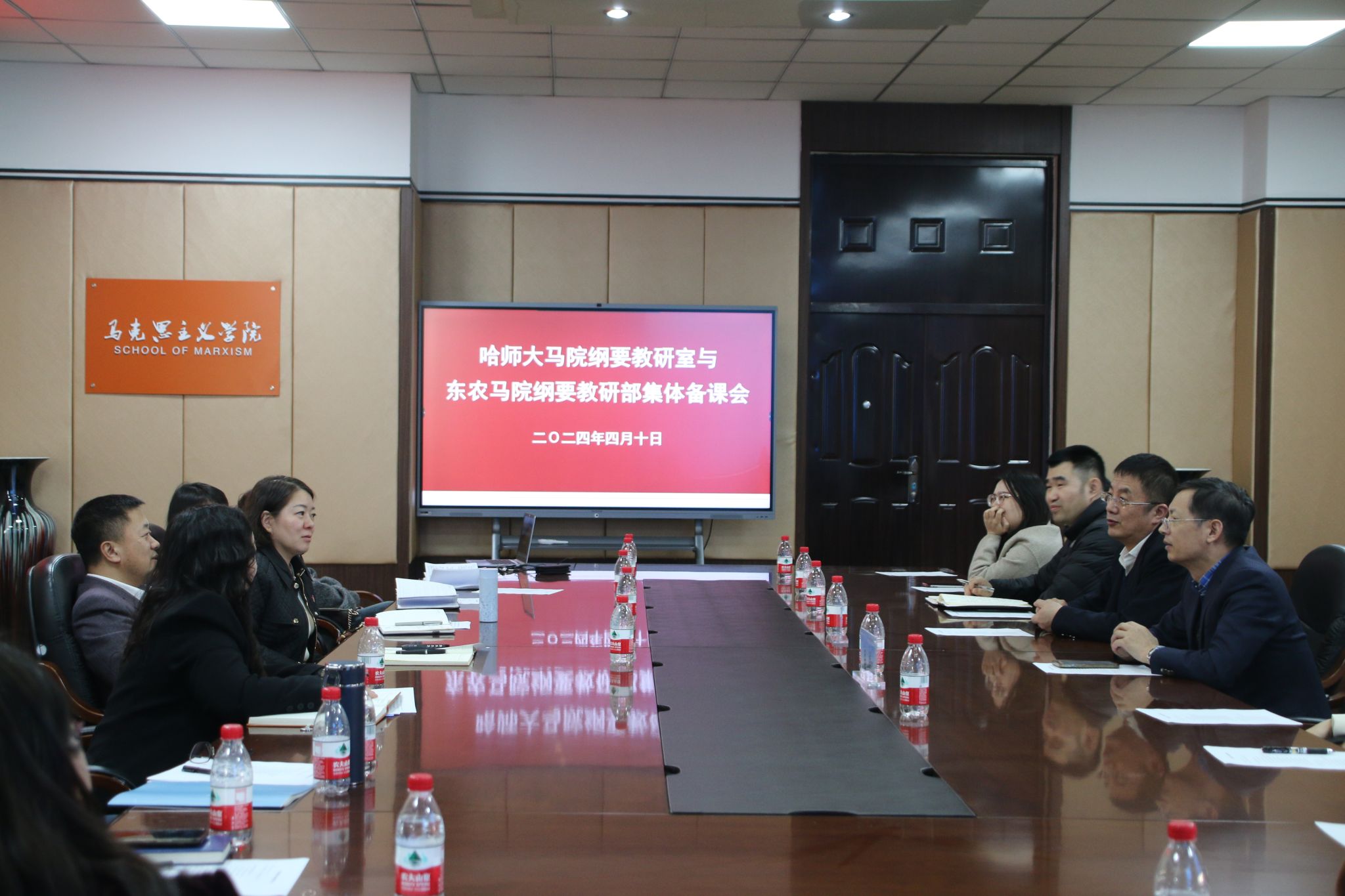 4月11日,马克思主义学院中国近现代史纲要教研部全体教师前往哈尔滨师范大学马克思主义学院中国近现代史纲要教研室开展合作共建调研交流。马克思主义学院党委书记吕晶、副院长刘大勇参与活动。