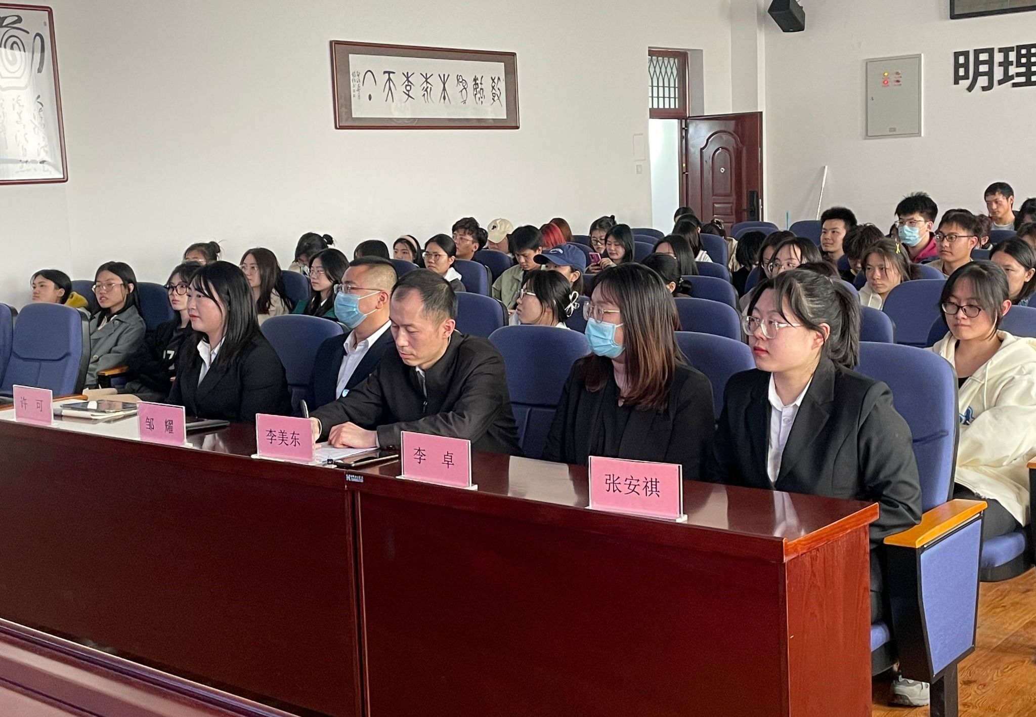 为深入学习贯彻习近平法治思想,进一步深化实施大学生志愿者服务基层计划法律援助项目,引导和鼓励更多优秀的高校毕业生加入大学生法律援助志愿者队伍,4月11日下午,黑龙江省大学生志愿者服务基层行动计划法律援助项目宣讲会在公共管理与法学院举行。省司法厅公共法律服务管理一处副处长李美东、省司法厅公共法律服务管理一处工作人员李卓、齐齐哈尔市甘南县法律援助中心主任邹耀,公共管理与法学院党委副书记马涛、法学系副主任陈鹏、辅导员王凯,项目志愿者代表许可、张安祺及法学专业毕业生参加宣讲会。会议由马涛主持。