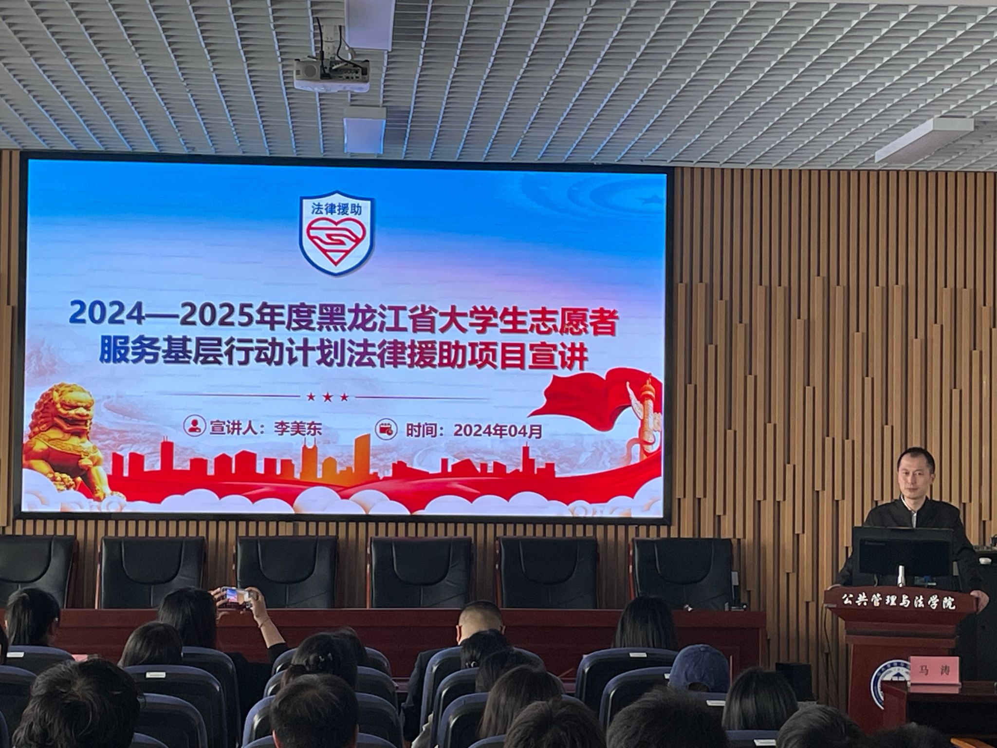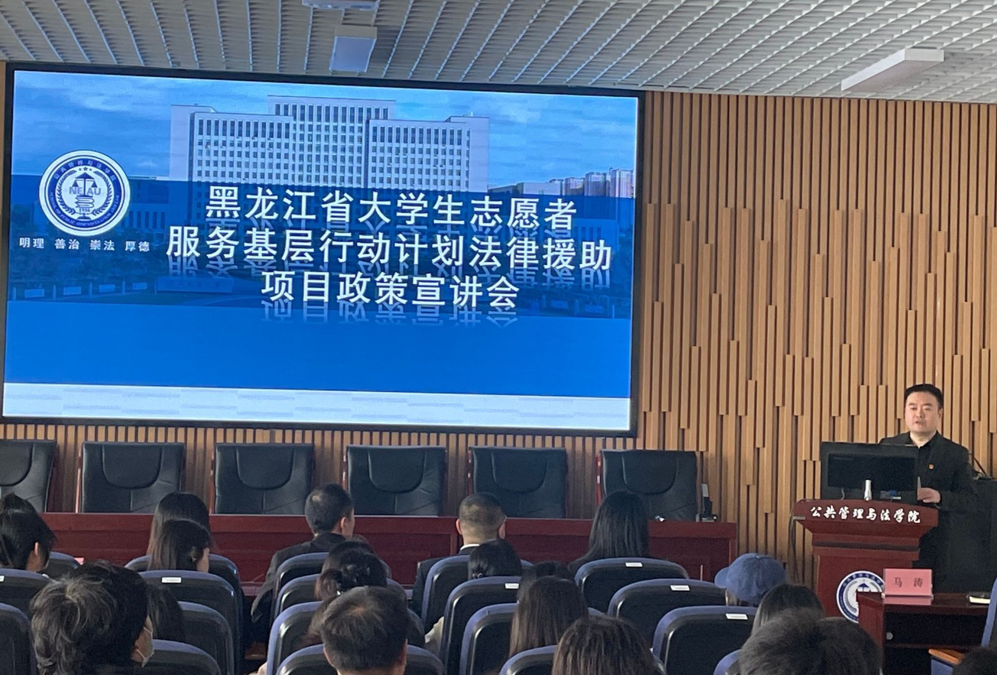 黑龙江省大学生志愿者服务基层行动计划法律援助项目宣讲会在公共管理与法学院举行