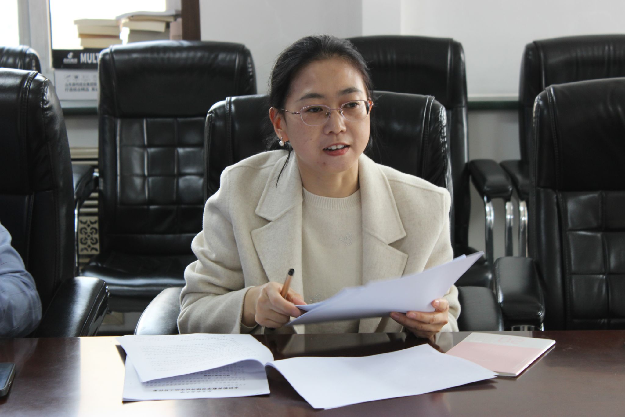李茉对学院下一阶段本科教育教学审核评估工作提出明确要求,她强调了审核评估工作的重要性,一是要深入领会审核评估政策文件精神,对照指标体系进行细致研究,确保各项工作符合评估标准;二是要充分认识新一轮审核评估工作任务的艰巨性和紧迫性,既聚焦学院教育教学的实际工作状态,深化教育教学改革,提高教育教学质量,又做好必要支撑材料,充分展现学院人才培养特色亮点;三是要提高工作效率,各有侧重、分门别类做好相关工作,以更高的站位,凝练亮点特色,强调逻辑结构,确保报告内容充实、准确、有说服力,切实解决教学工作中存在的问题和不足,强化内部质量保障体系建设,全面提高学院本科教育教学水平和人才培养质量。