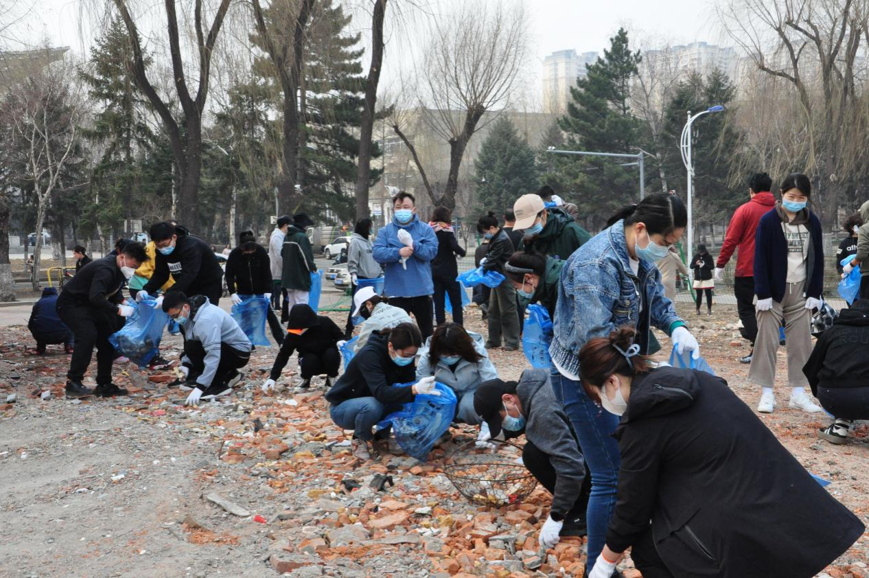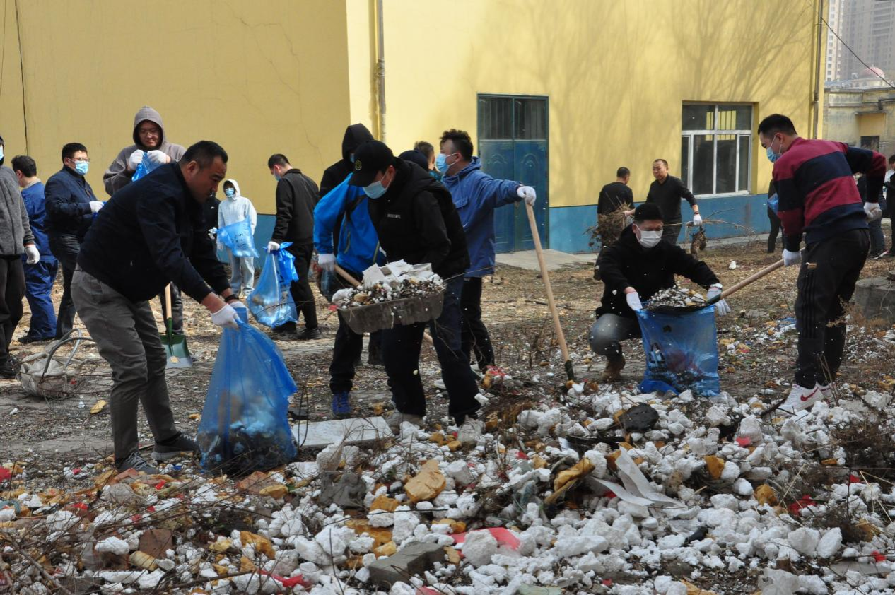 4月12日,后勤管理处组织党员、干部、职工百余人,开展校园卫生清理工作,清理原南区浴池拆除场地内的杂物垃圾。