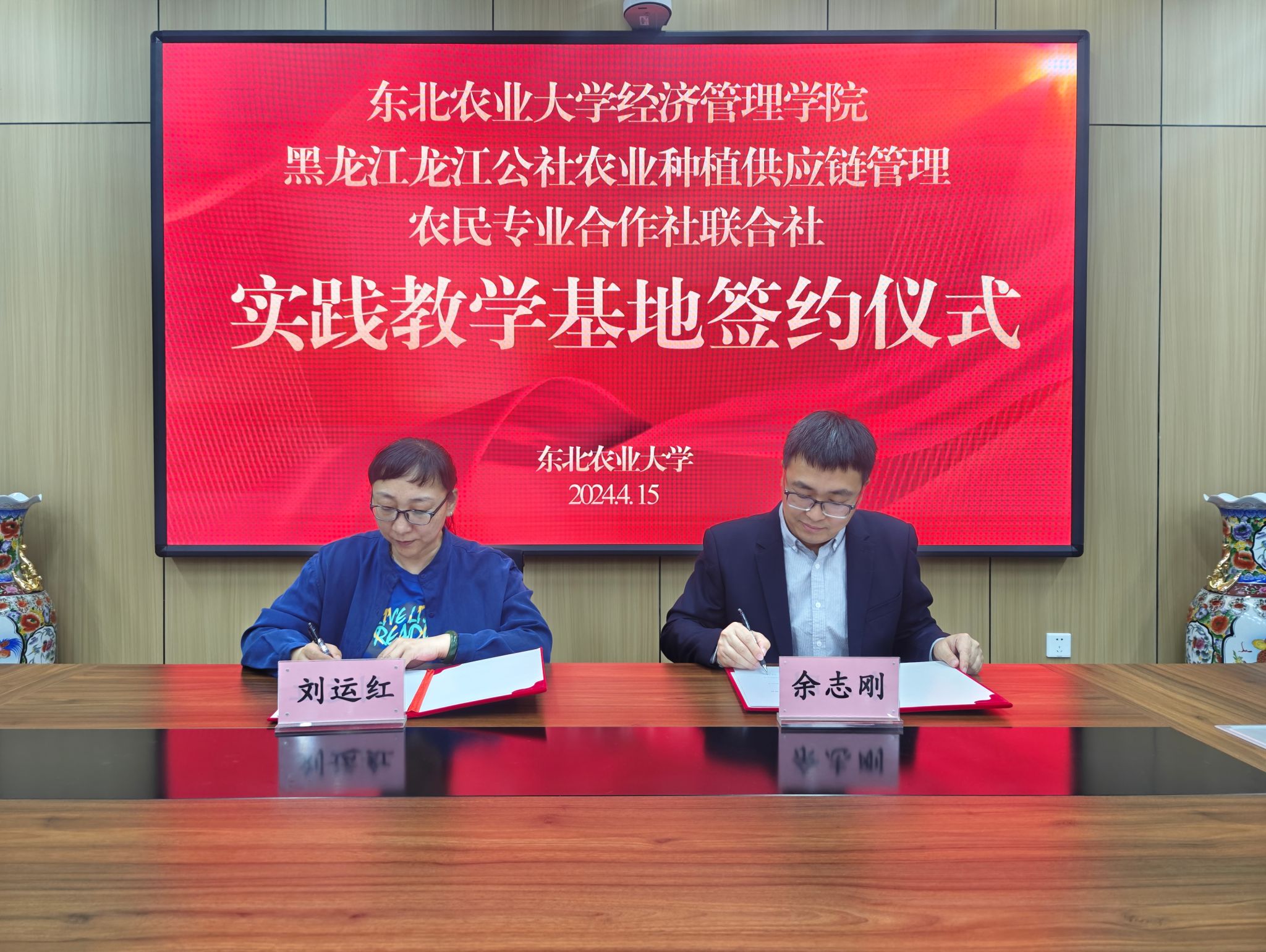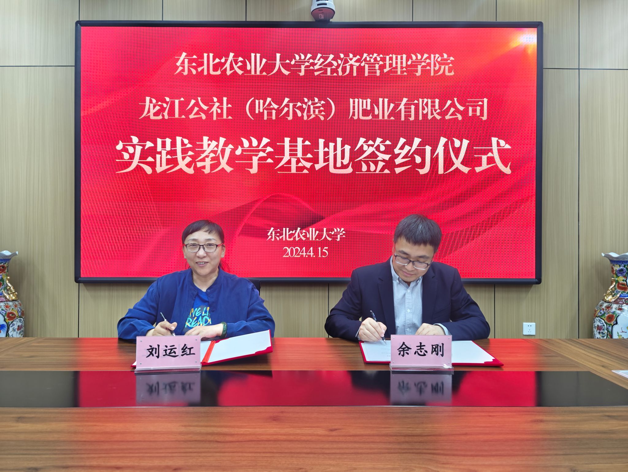 随后,经济管理学院与黑龙江龙江公社农业种植供应链管理农民专业合作社联合社、龙江公社(哈尔滨)肥业有限公司、黑龙江众耕农业科技有限公司以及黑龙江地谱信息技术有限公司签署东北农业大学经济管理学院实践教学基地的系列合作协议。此次实践教学基地签约的成功举行,促进了经济管理学院相关专业与企业在产品创新、成果转让、技术培训等方面的广泛合作,为全面推动校企合作,促进产、学、研结合,提升应用型复合型人才培养质量奠定了坚实基础。