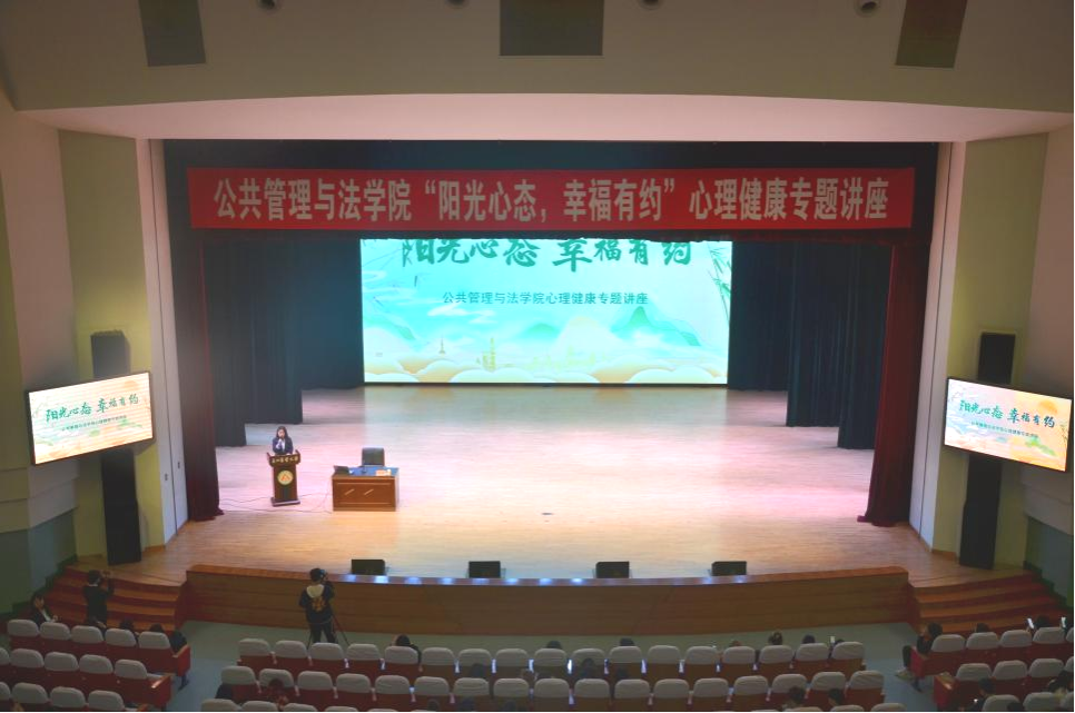 按照教育部《全面加强和改进新时代学生心理健康工作专项行动计划(2023-2025年)》文件要求,为进一步落实学校学习培训和强化管理两个“三年行动”及“爱校如家、当好主人翁”活动部署,培养学生自尊自信、理性平和、积极向上的健康心态,帮助学生更好地适应校园生活,4月18日,公共管理与法学院在音乐厅举办《阳光心态 幸福有约》心理健康专题讲座。学校心理健康教育中心杨婧受邀主讲,学院党委副书记马涛、全体辅导员、全院学生参加讲座,讲座由辅导员王琦主持。