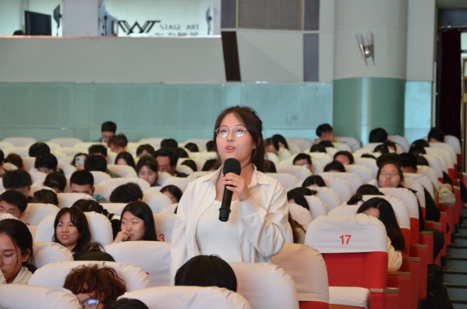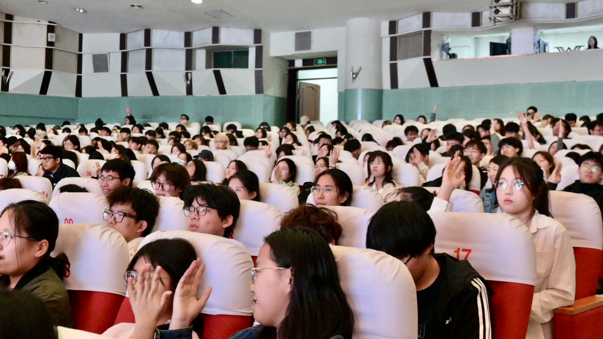 杨婧详细地为同学们讲解如何识别和调整自己的情绪,以及如何提升个人素质和抗压能力。讲座过程中,杨婧采用问答的形式与现场同学进行互动,幽默风趣、深入浅出、贴近实际的讲解使同学们的身心得到了极大的放松,现场气氛热烈。