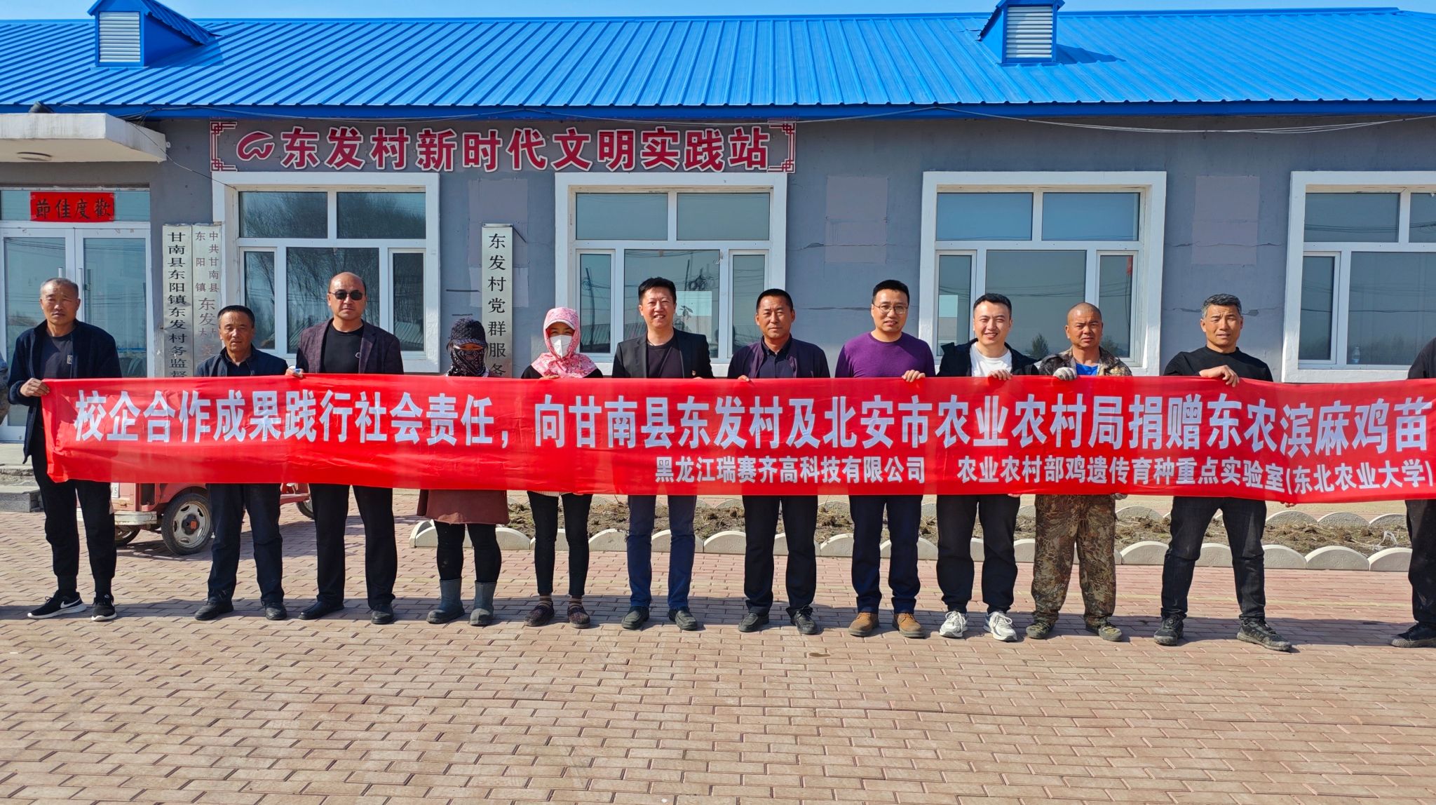 驻村工作队协助学校农业农村部鸡遗传育种重点实验室及黑龙江瑞赛齐高科技有限公司提升社会服务成效、推动成果落地转化,向全村91户脱贫户捐赠北方优质鸡种滨麻鸡2500只,价值1.6万元。为养殖农户与养殖技术团队搭建交流平台,及时为农户提供滨麻鸡的饲喂技术咨询并初步达成回购计划,更好地服务于地方农户养殖,该举措即丰富了养殖农户的庭院经济内容,又为脱贫户提供了一条稳定的增收渠道,进一步夯实“高校-科技企业-驻村工作队-农户”乡村振兴的新模式。