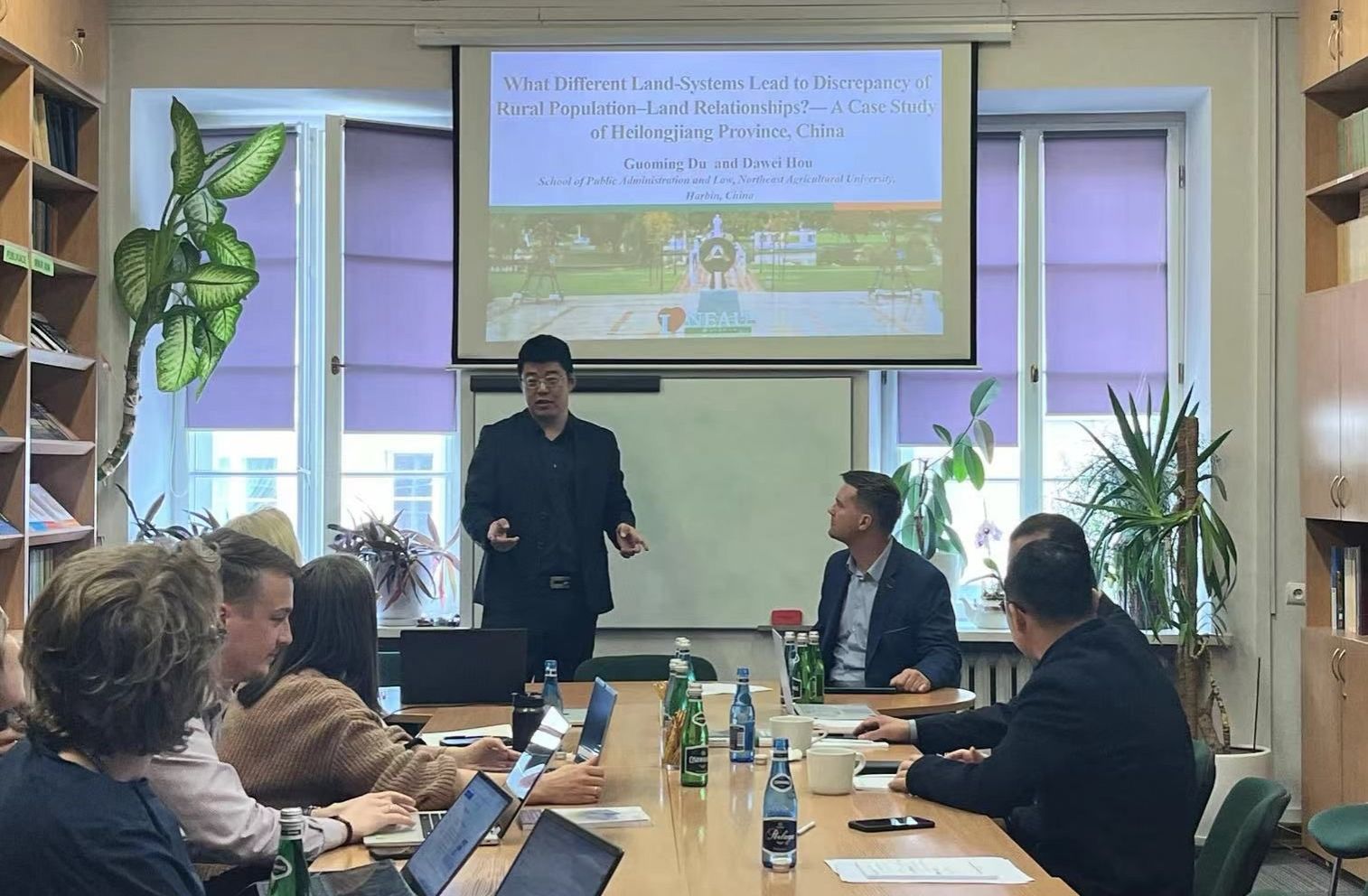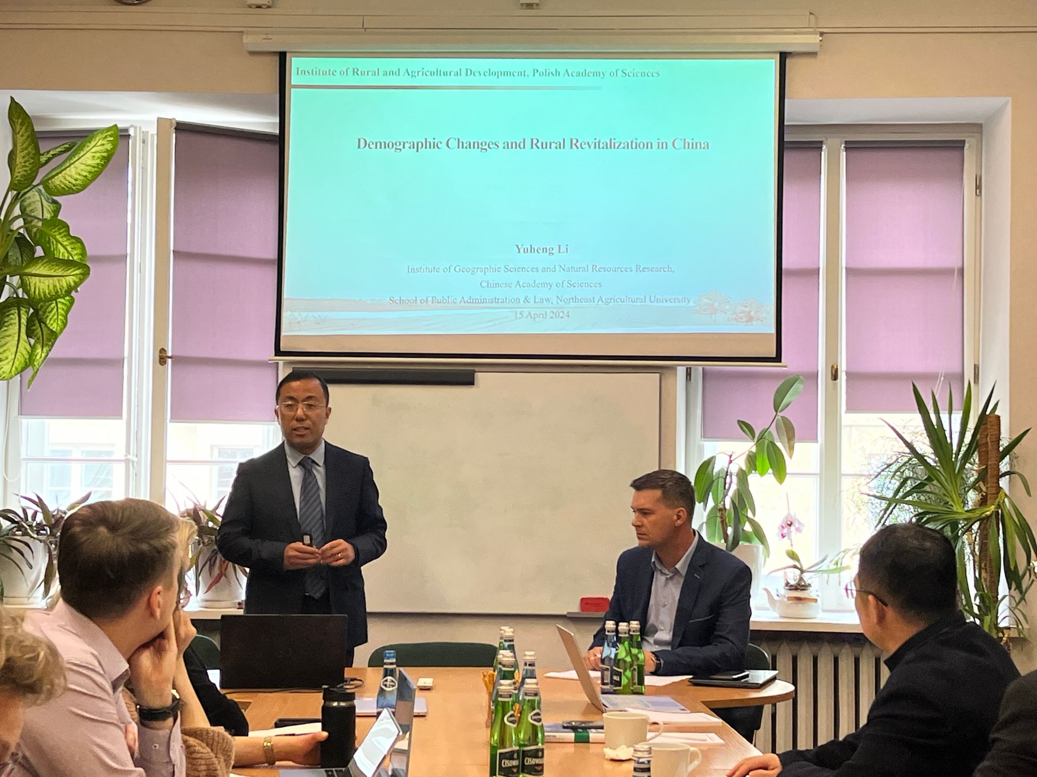4月15日,代表团成员参加了由波兰科学院举办的主题为:“乡村人口流动与农业可持续发展”学术研讨会。会上,杜国明首先向参会人员详细介绍了东北农业大学及公共管理与法学院的基本情况,以及近期在黑土地保护等方面取得的显著成果,并邀请波兰科学院农村与农业发展研究所部分成员访问我校进行学术交流。李玉恒副研究员作了题为“Demographic Changes and Rural Revitalization in China”的学术报告,详细解析了乡村振兴战略对我国社会经济发展和人口流动的深刻影响。侯大伟副教授作了题为“What Different Land-Systems Lead to Discrepancy of Rural Population–Land Relationships?--- A Case Study of Heilongjiang Province, China”的学术报告,系统地梳理了黑龙江地区的农村人口流动和土地利用变化特征,深入剖析了不同管理制度对二者关系的影响,并从促进城乡融合、优化产业结构、加强农村宅基地整治等方面提出了提升对策。