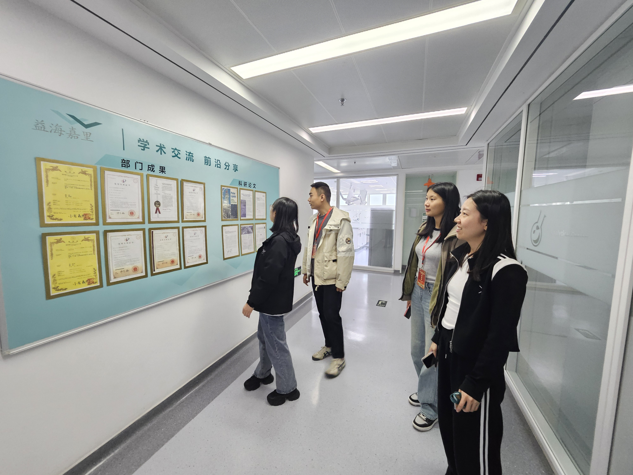 在益海嘉里,张鑫琳带领三名研究生参加第十届金龙鱼慈善公益基金学术交流年会,与会议负责人周莹探讨了行业发展趋势、人才需求热点等情况。周莹为研究生们剖析了职场生态,分享了学术研究如何转化为实际应用的宝贵经验,提供了极具价值的实战指导,使他们对未来的职业道路有了更为清晰的认识与规划。食品学院22届校友唐雅倩带领大家参观益海嘉里研发中心和体验馆,近距离接触行业领头企业,了解益海嘉里的企业发展历程、核心业务、感受到了食品科学最前沿的技术发展,体验了现代化企业的高效运营模式与严谨的质量管理体系。