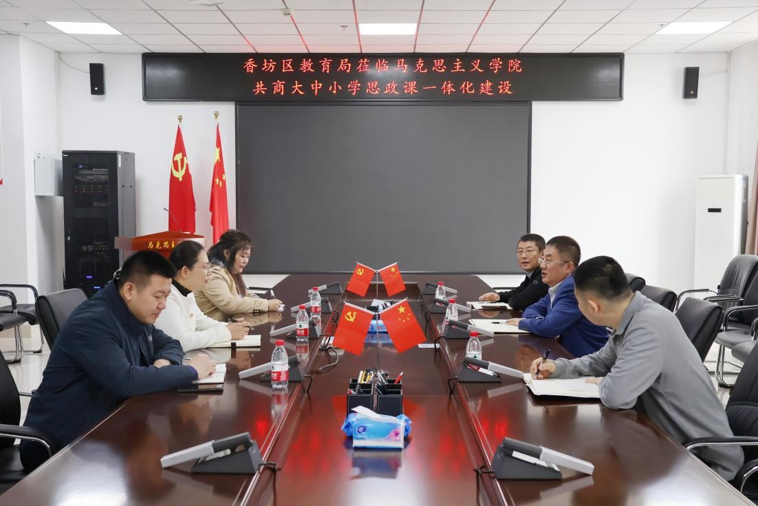 4月23日,香坊区教育局宣传部部长王迎一行到马克思主义学院就大中小学思想政治教育一体化建设相关事宜开展座谈交流,学院副院长刘大勇及部分教研室主任参加此次会议。