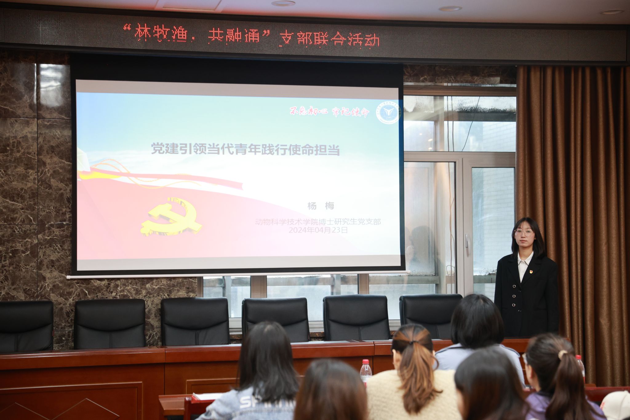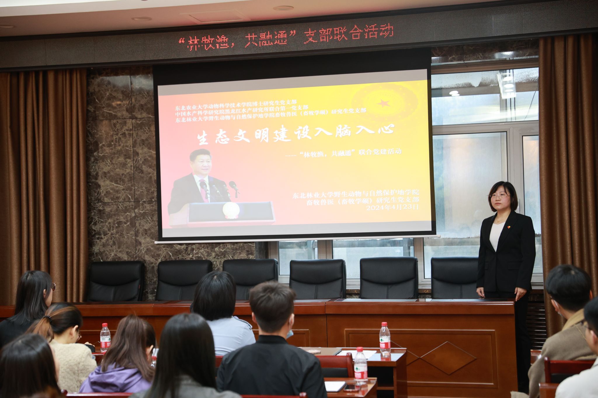 东北林业大学野生动物与自然保护地学院畜牧兽医(畜牧学硕)研究生党支部书记张圆圆以生态文明建设为主题,结合“林牧渔”的学科特点,展示了东北林业大学生态文明建设成果以及支部生态文明党建成效。东北农业大学动物科学技术学院博士研究生党支部书记杨梅以“党建引领当代青年践行使命担当”为题,分享支部作为科研创新服务型“百个研究生样板党支部”在支部建设模式和科研服务、党员活动等方面的建设举措与成效。