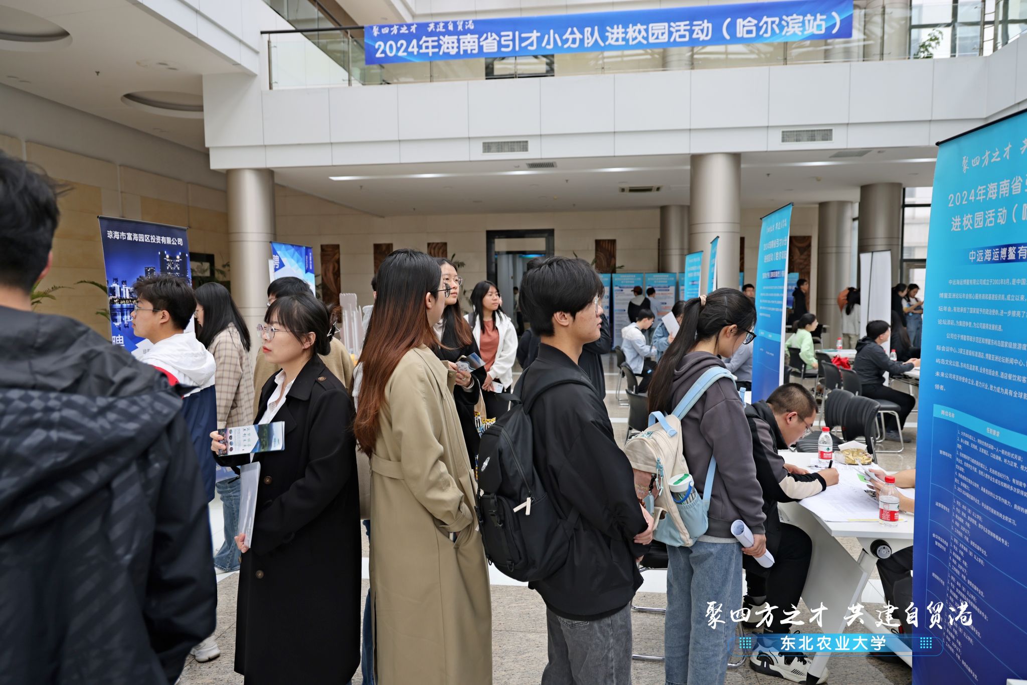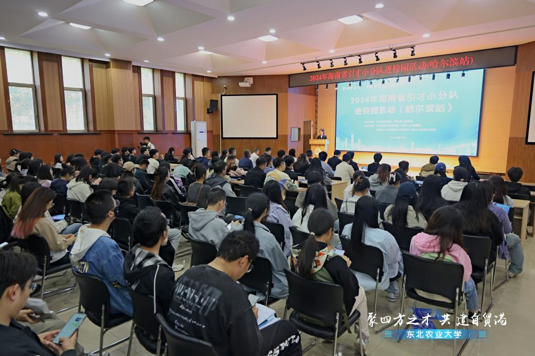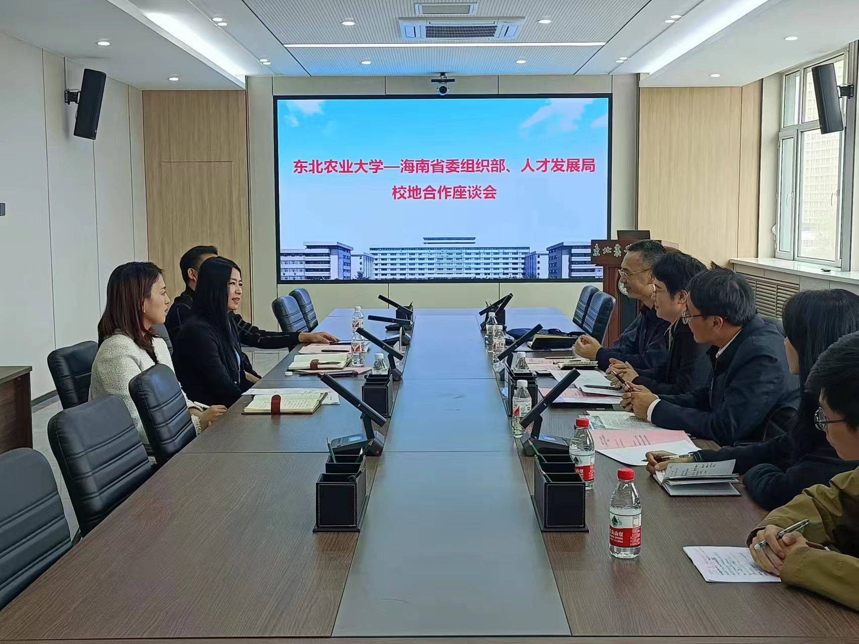 4月24日,海南省人才发展局局长、人才办主任官业军、海南省委组织部干部规划办主任徐颖带队到东北农业大学开展海南省引才小分队进校园专场招聘会,并就校地人才合作和招聘事宜召开座谈会,学校招生就业处处长宋跃芬,副处长吴立龙,市场科科长房丹丹参加会议。