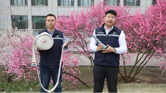 刘浩东、吴智衡讲解消防器材操作规范