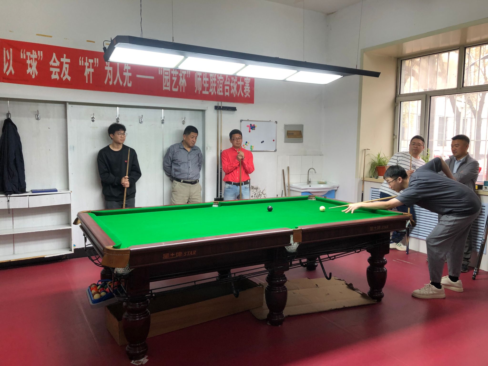 为丰富校园文化生活,营造良好导学氛围,激发学院师生参与体育锻炼的热情,4月23日,园艺园林学院举办了以“球”会友,“杆”为人先——“园艺杯”研究生师生台球联谊赛。学院党委书记程国林,副书记、工会主席杨楠,副处级辅导员王勇出席比赛开幕式,程国林为比赛开球。