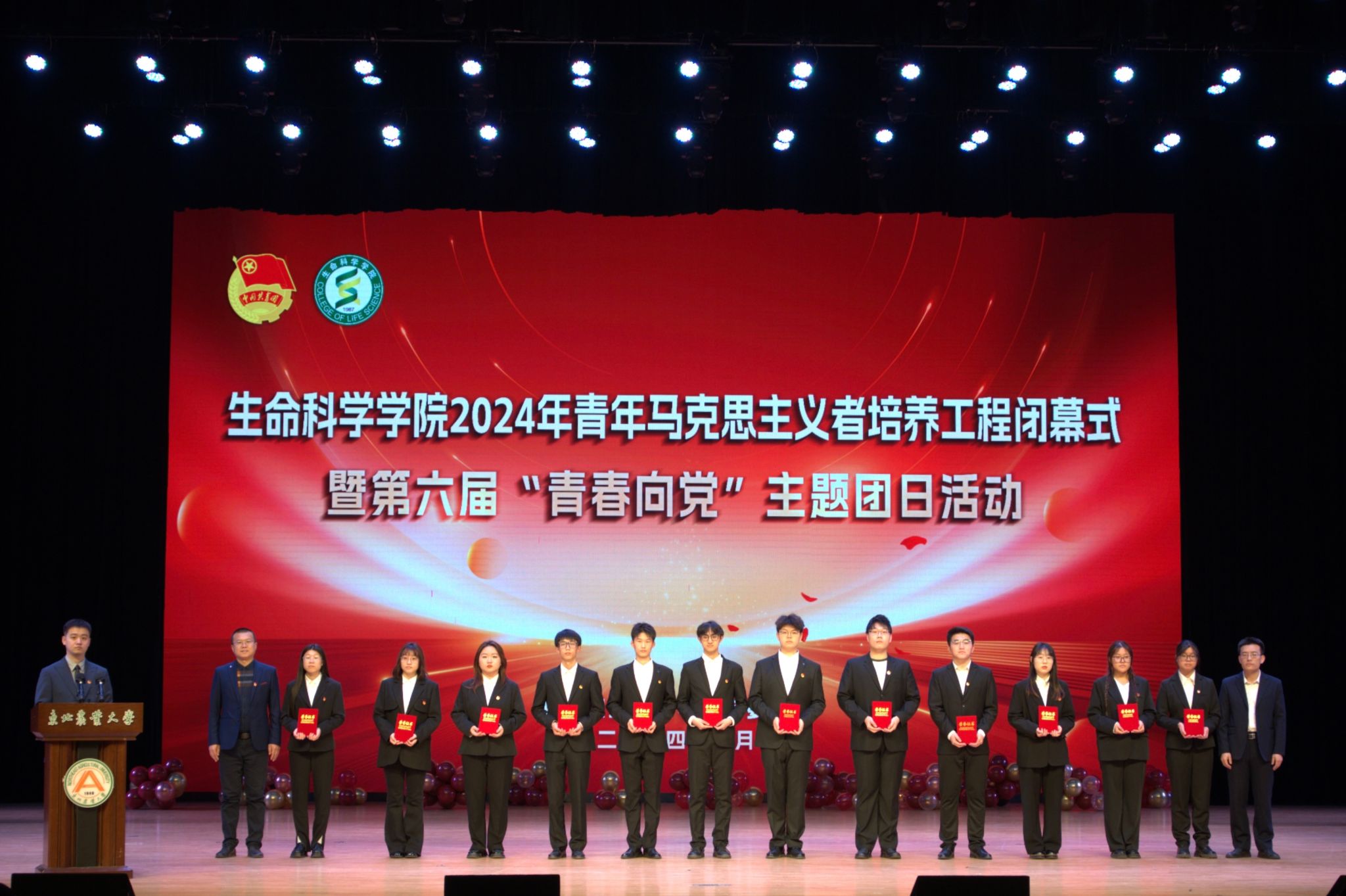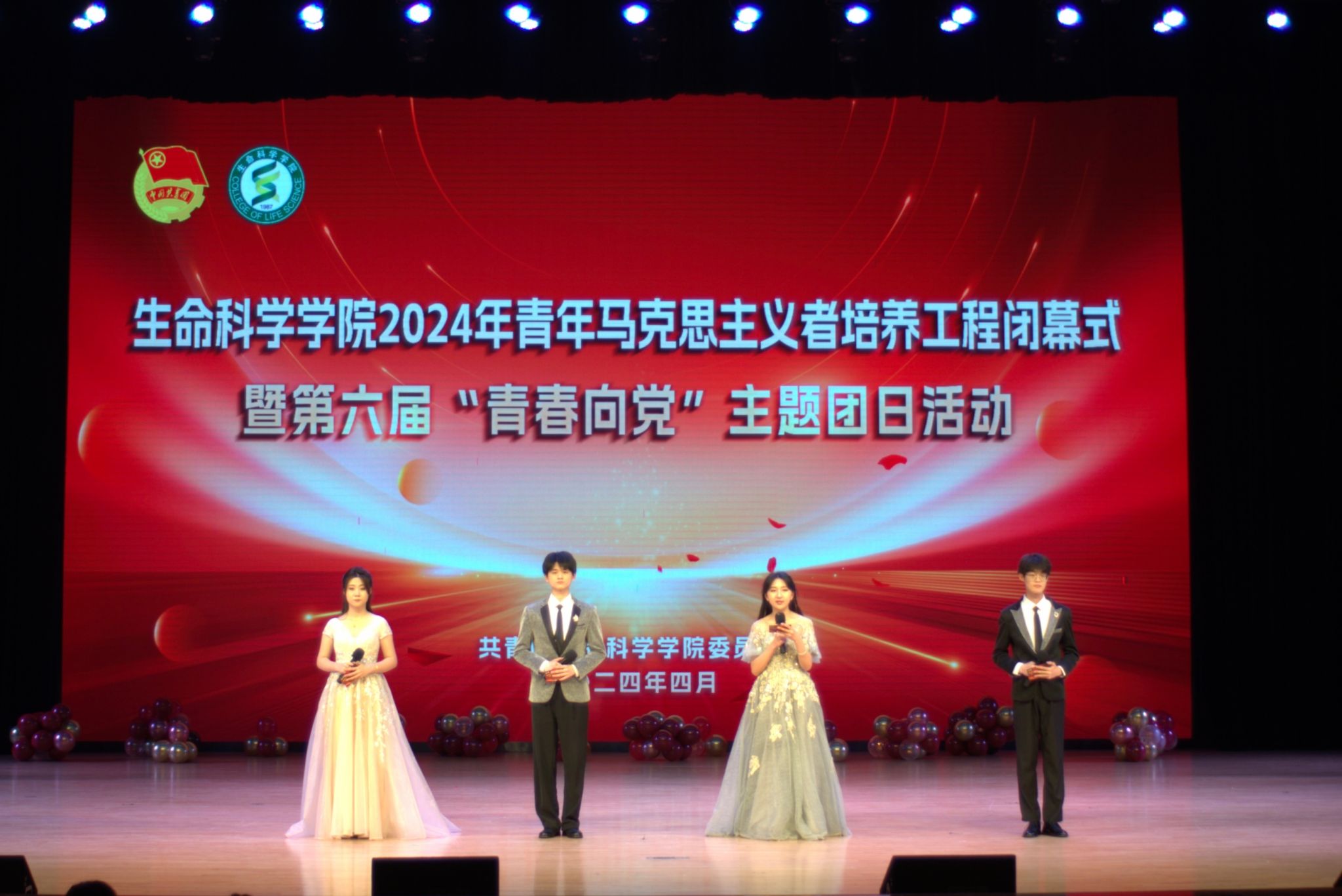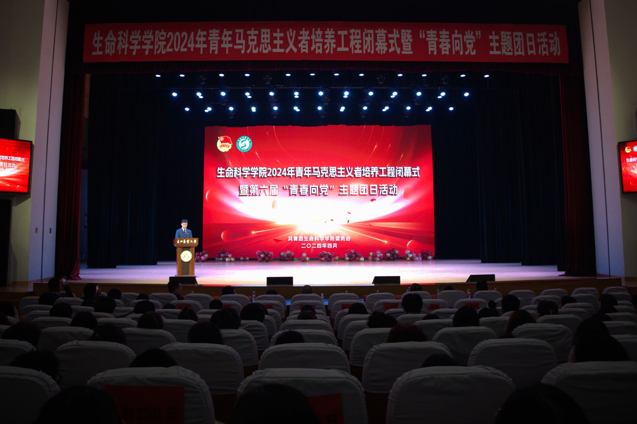 赓续百年精神风貌,书写新时代青春华章。为全面贯彻落实习近平总书记关于青年工作的重要思想,增强学院青年学子的思想政治素养和马克思主义理论素养,按照共青团中央《关于深入实施青年马克思主义者培养工程的意见》有关要求,结合校团委工作部署,4月24日,生命科学学院2024年青年马克思主义者培养工程结业式暨第六届“青春向党”主题团日活动在学校音乐厅举行。校团委书记李卡、生命科学学院党委书记施喜军、校团委副书记焦文静、生命科学学院党委副书记孙珠红、学院2022级班主任和全体辅导员出席活动,青马工程全体学员与2022级、2023级全体本科生共计800余人参加活动,会议由团委指导教师韩宗伯主持。