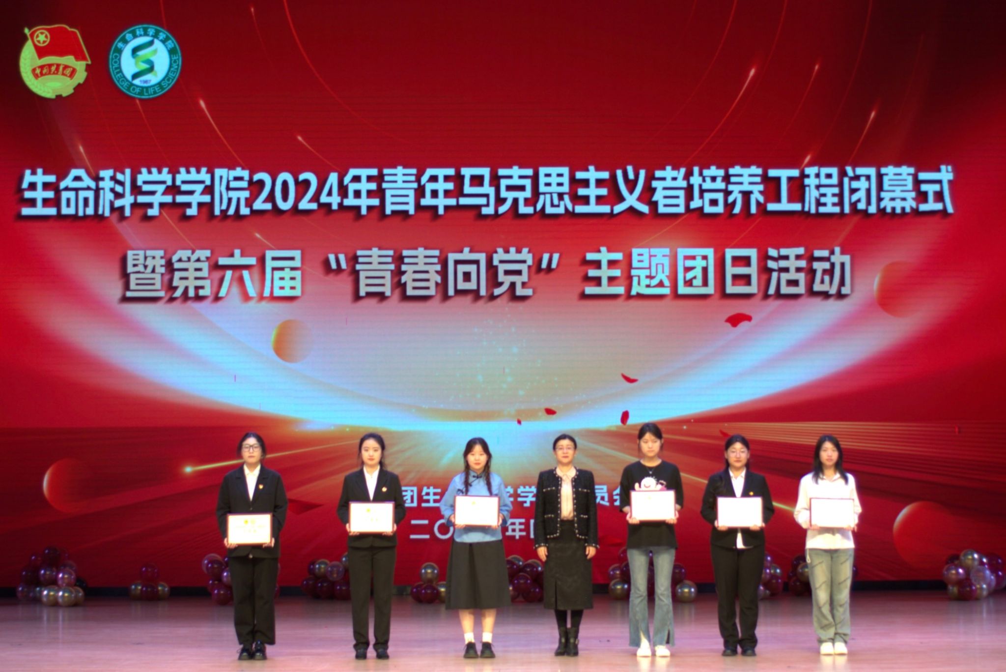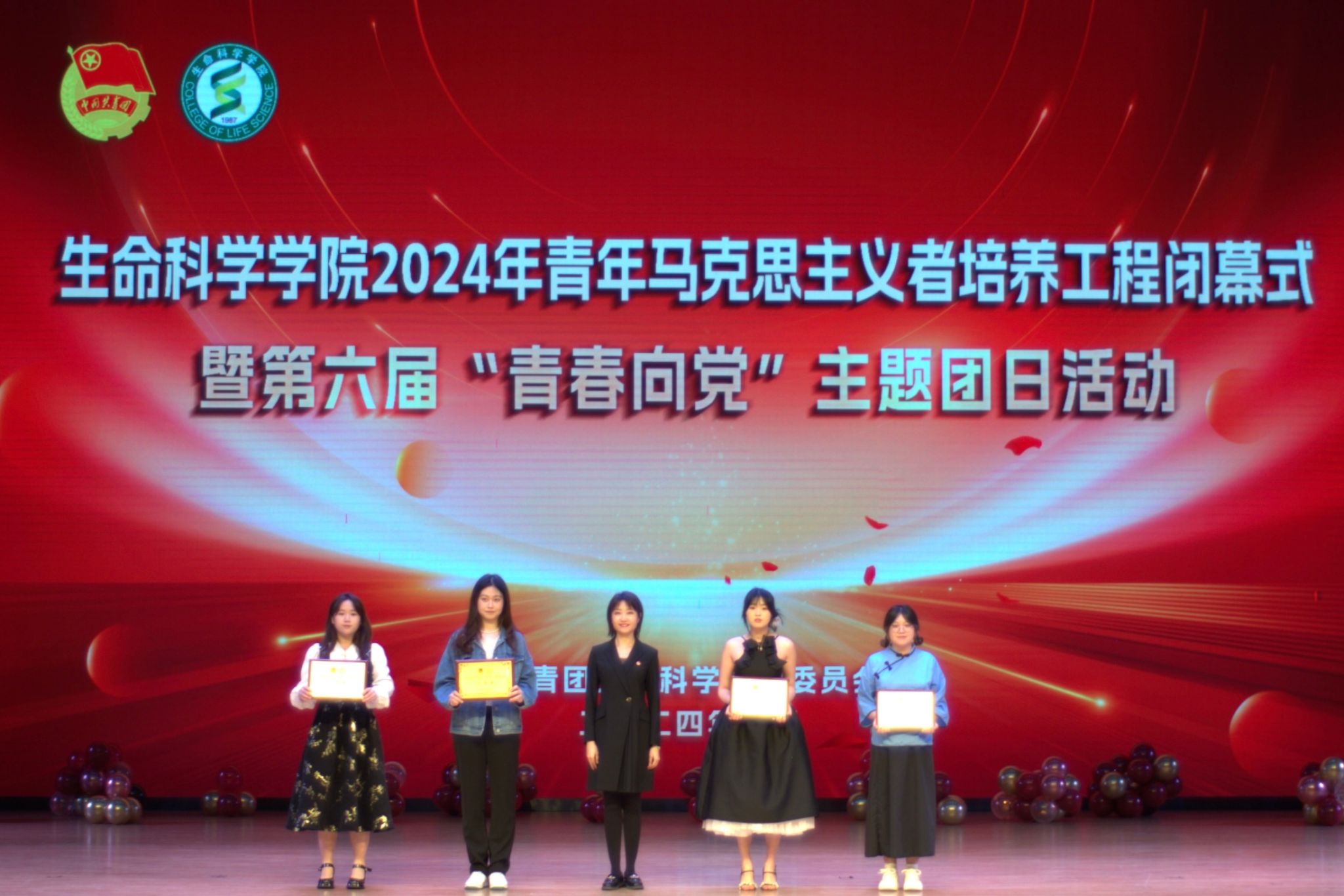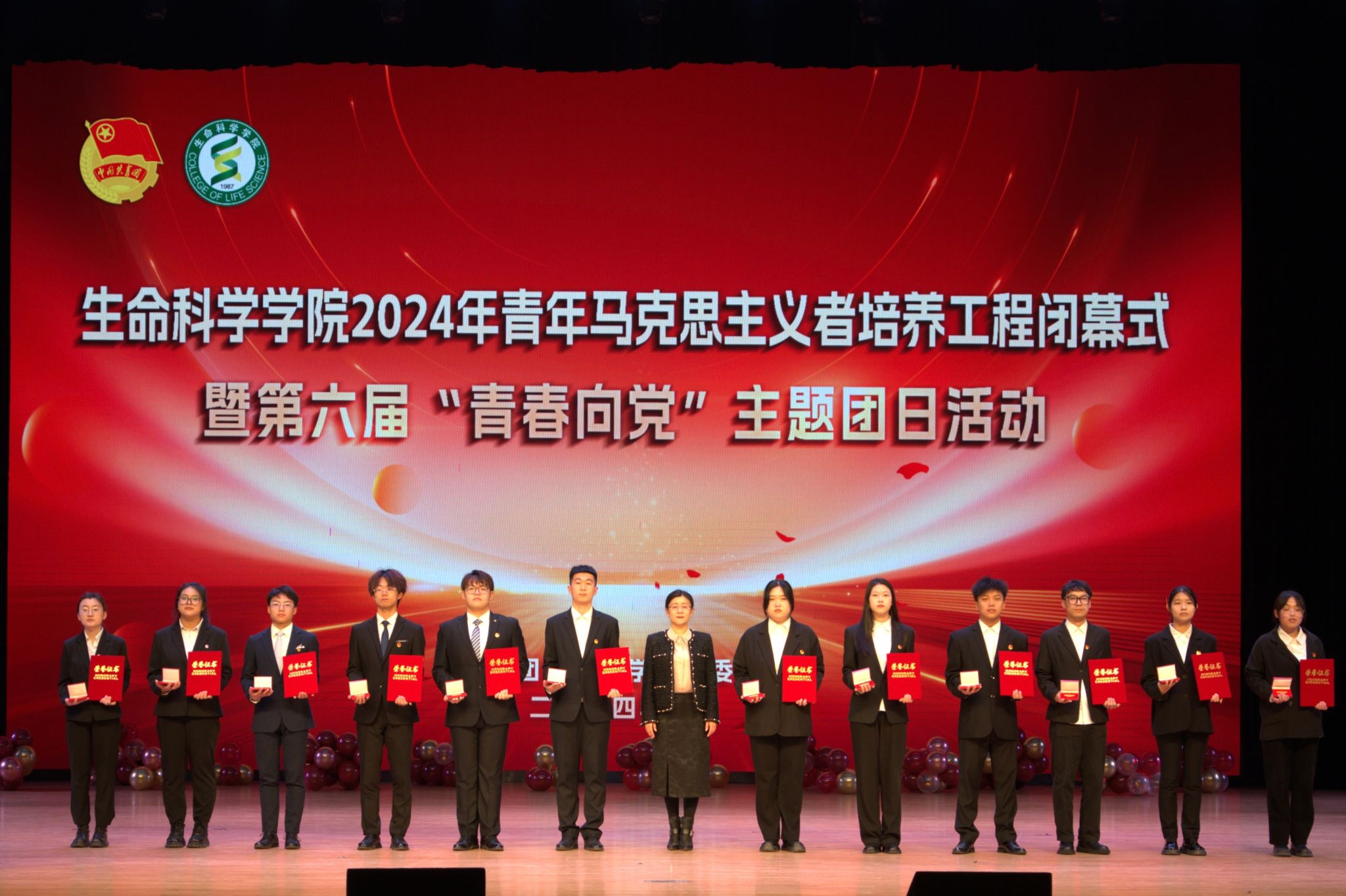 赓续百年精神风貌,书写新时代青春华章。为全面贯彻落实习近平总书记关于青年工作的重要思想,增强学院青年学子的思想政治素养和马克思主义理论素养,按照共青团中央《关于深入实施青年马克思主义者培养工程的意见》有关要求,结合校团委工作部署,4月24日,生命科学学院2024年青年马克思主义者培养工程结业式暨第六届“青春向党”主题团日活动在学校音乐厅举行。校团委书记李卡、生命科学学院党委书记施喜军、校团委副书记焦文静、生命科学学院党委副书记孙珠红、学院2022级班主任和全体辅导员出席活动,青马工程全体学员与2022级、2023级全体本科生共计800余人参加活动,会议由团委指导教师韩宗伯主持。