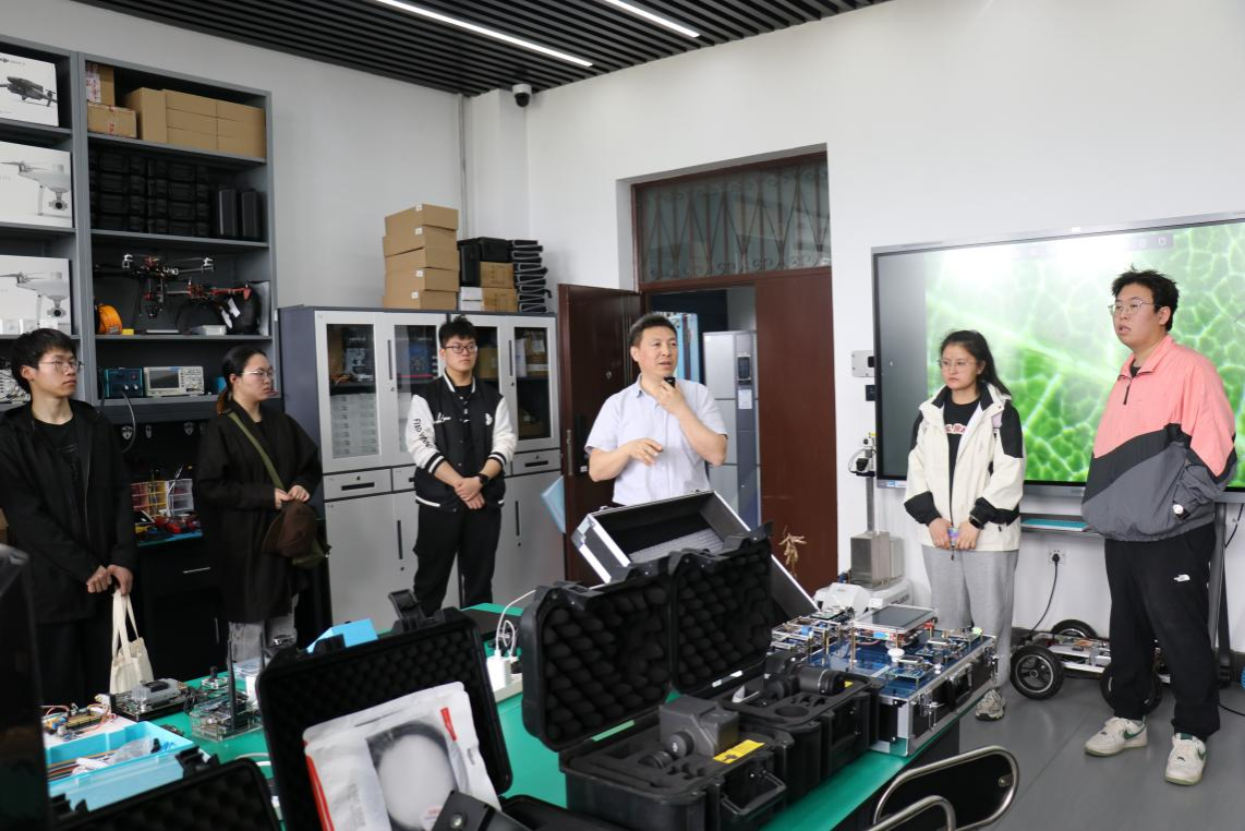 在农学院智慧农业互动空间,参观了智慧作物信息实验室、虚拟仿真实验室、智慧农业创新实验室、植物表型平台园区,通过农学院胡振帮老师的介绍,大家了解了智慧农业发展进程、作物信息采集过程、智慧农业设备类型及应用,沉浸式体验虚拟作物和虚拟农业场景,领略科技力量赋能现代农业的魅力。