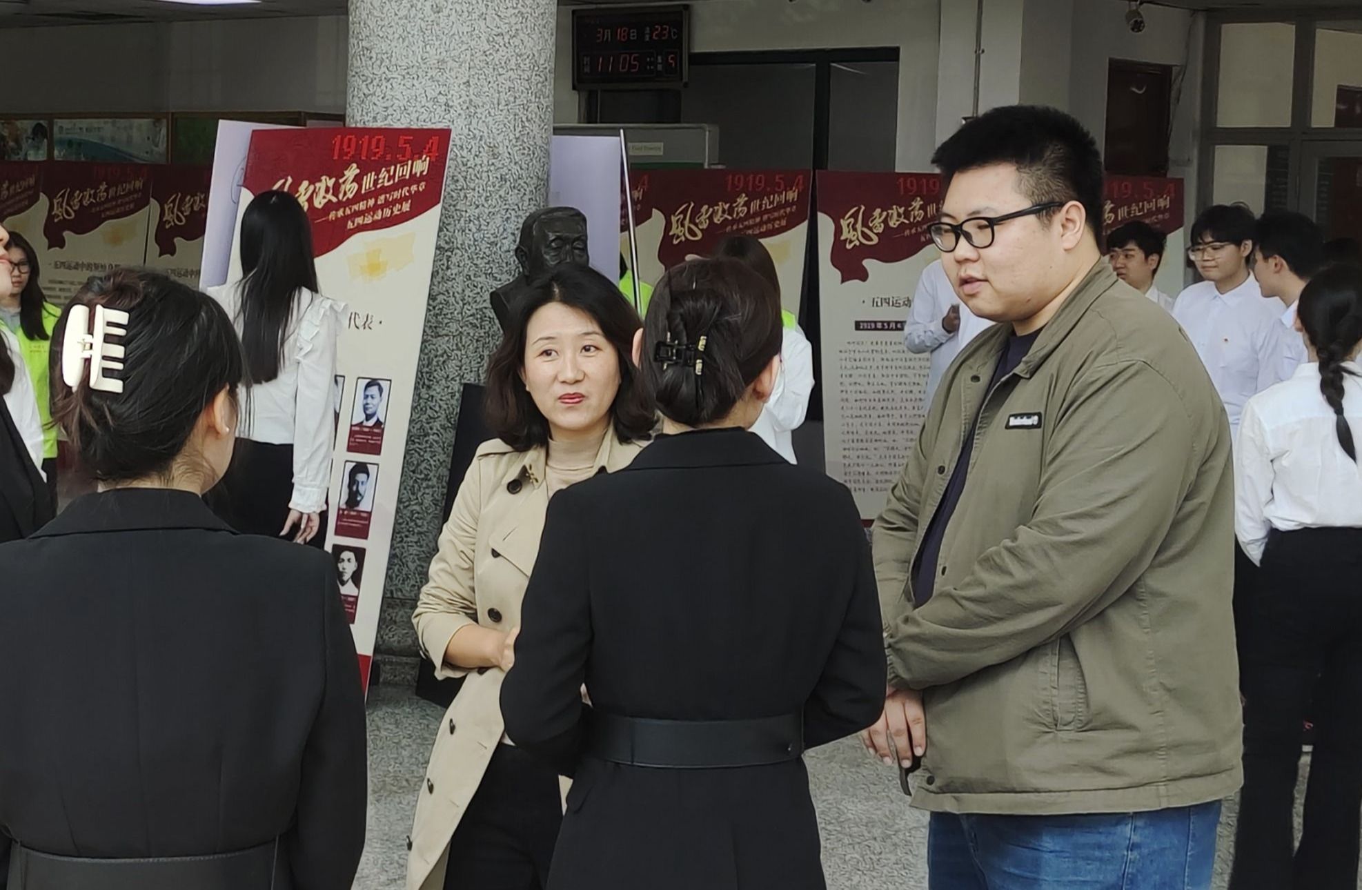 随后,志愿者围绕五四运动的历史背景、事件起因经过、领导人物风采及其史意义进行讲解。