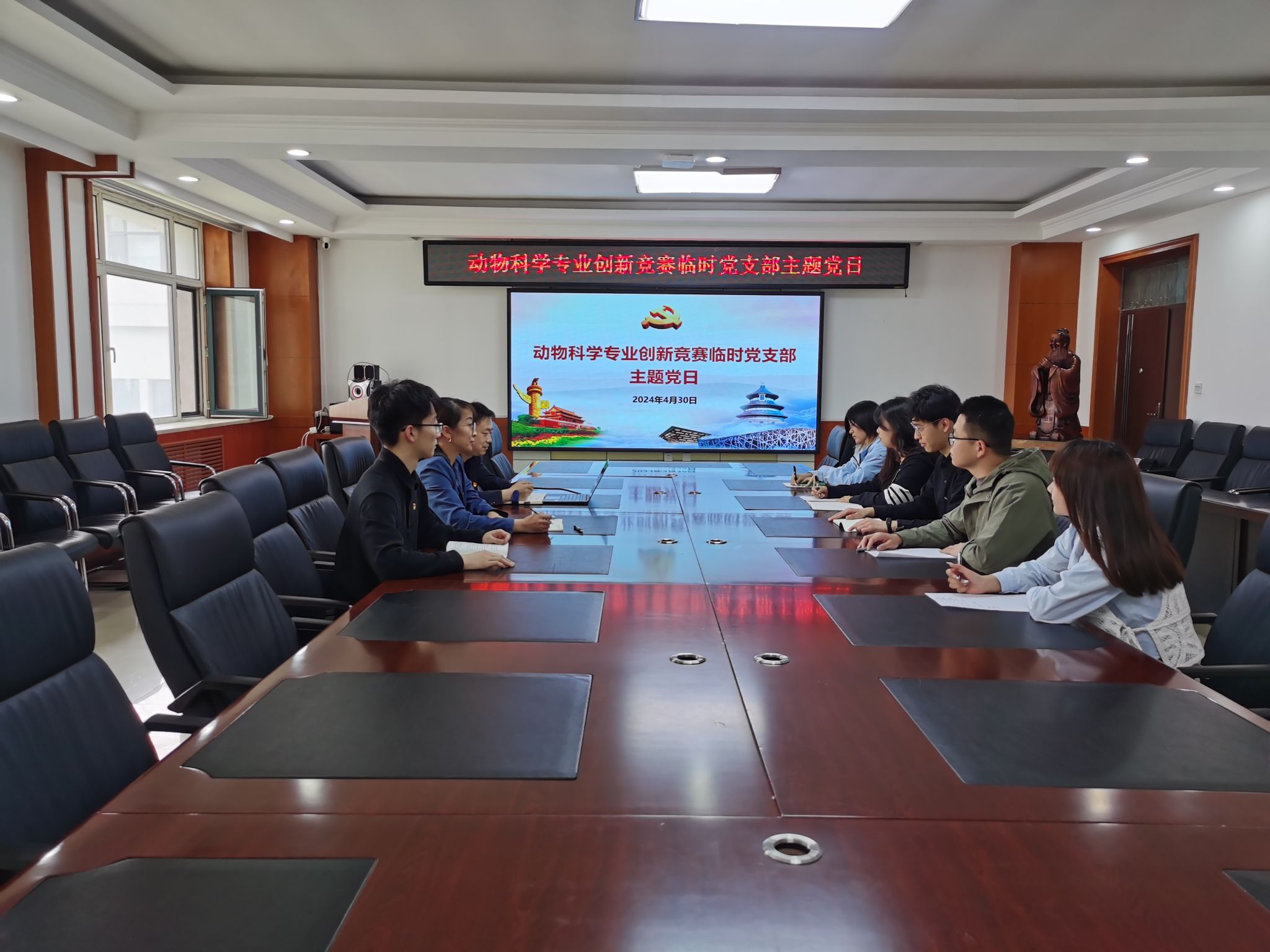 为深刻领会习近平总书记关于教育、科技、人才的重要论述,加强大学生专业技能和实践动手能力培养,全面提高综合素质和培养质量,4月30日上午,动物科学专业创新竞赛临时党支部在学院218会议室围绕学习“大力发展现代特色农业产业”及全国大学生动物科学专业技能大赛经验分享开展主题党日活动。学院正处级组织员栾松、辅导员李建磊及支部学生党员参加活动,会议由动物遗传育种与繁殖系教授、支部书记黄贺主持。