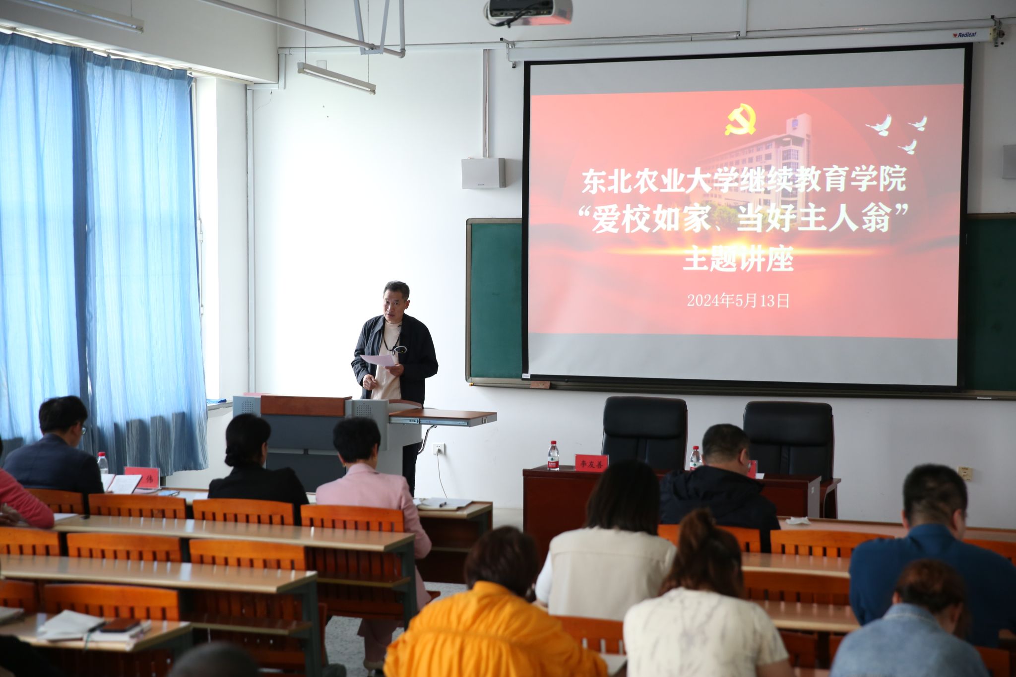 为贯彻落实《东北农业大学开展“爱校如家、当好主人翁”活动实施方案》相关要求,培养教职工爱校荣校意识,激发职工当好主人翁、建功新时代的干事创业热情,以实际行动推动学院事业实现高质量发展,5月13日下午,继续教育学院举办了“爱校如家、当好主人翁”主题讲座。讲座由继续教育学院党委书记李友善主讲,学院全体教职工聆听讲座。