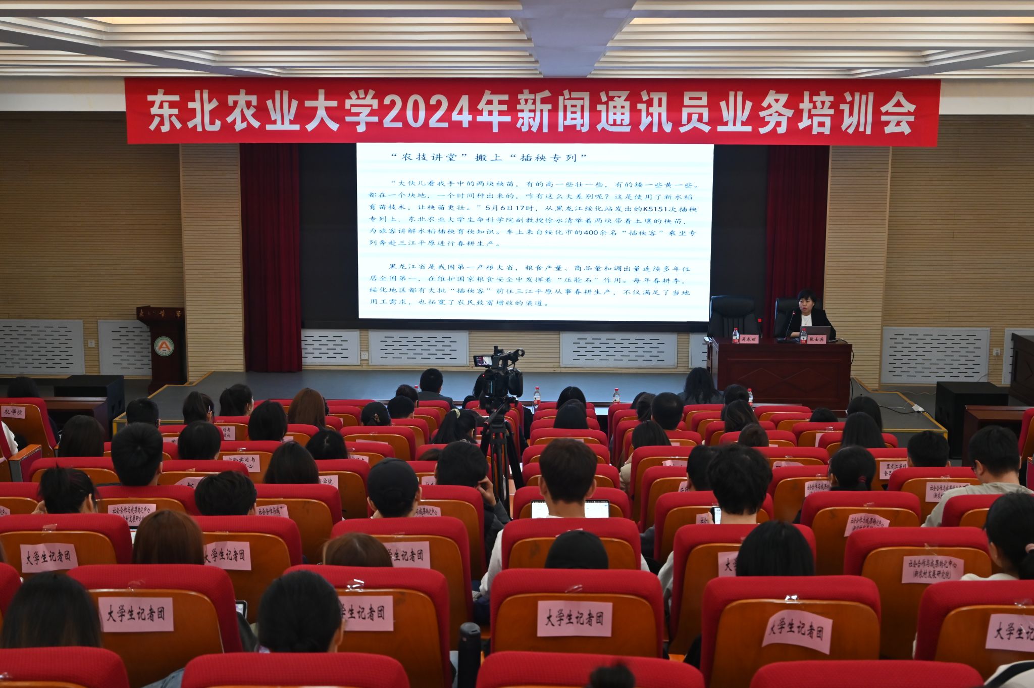 为深入落实东北农业大学“学习培训三年行动”,切实推进“爱校如家、当好主人翁”活动,进一步加强学校宣传工作队伍建设,提升新闻宣传工作整体水平,为学校各项事业高质量发展营造良好舆论环境,学校于5月15日在国际文化教育学院101会议室举办2024年新闻通讯员业务培训会,会议邀请了光明日报社黑龙江记者站主任记者张士英、东北农业大学动物医学学院副处级辅导员霍晨光作专题培训。学校各二级单位新闻通讯员、宣传部全体人员、相关单位工作人员及校大学生记者团全体成员参加此次培训。两场专题培训分别由宣传部部长吴春丽、副部长石岩主持。