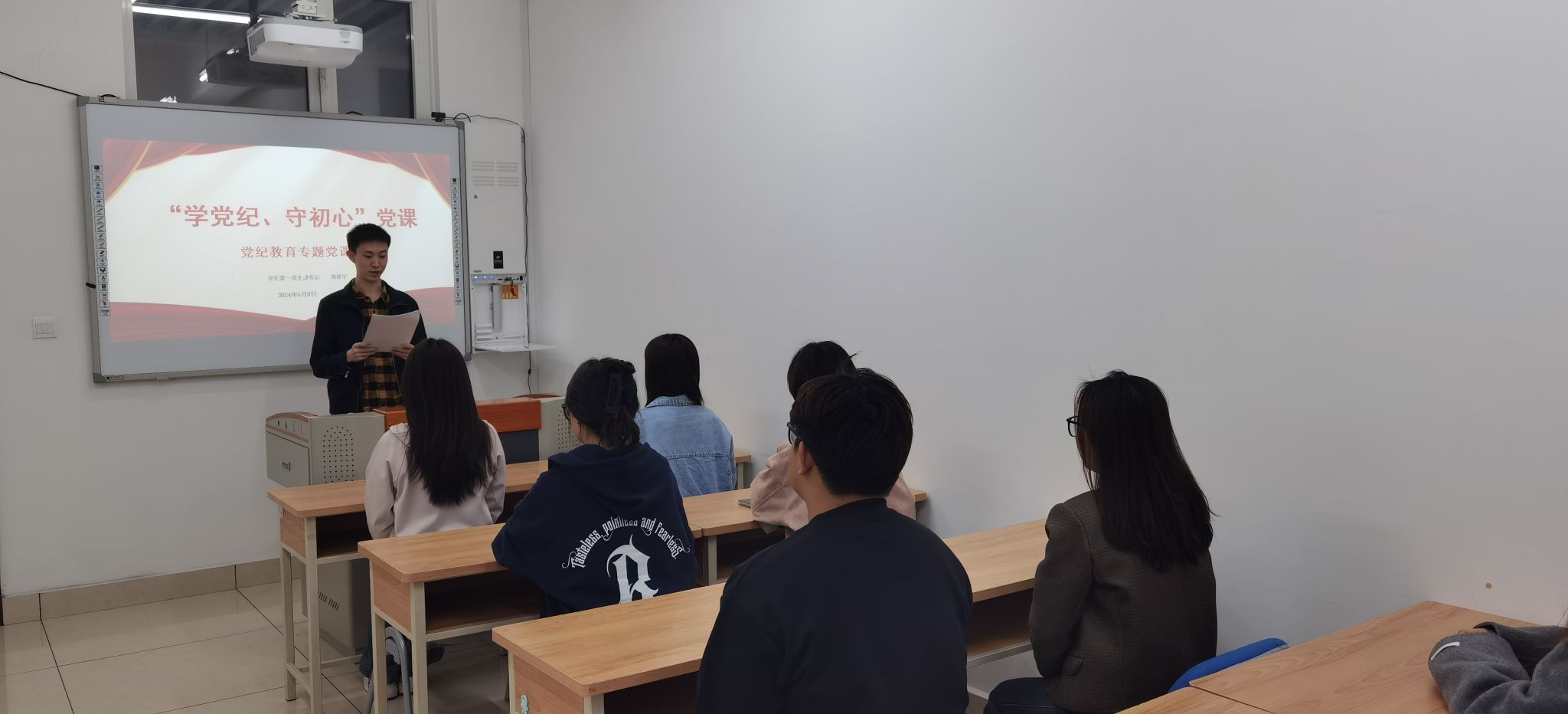 5月8日至5月17日,教工行政党支部书记韩笑以《学纪、知纪、明纪、守纪》为题,汉语国际教师党支部书记冯红以《加强党纪学习,筑牢党的纪律防线》为题,学生第一党支部书记周泽宇以《学纪党、守初心》为题,学生第二党支部书记张少奇以《坚定不移推进党纪教育,筑牢党的纪律防线》为题,学生第三党支部书记王富林以《严明党的纪律 永葆党员的先进性和纯洁性》为题,分别在各自党支部讲授了党纪学习教育专题党课。