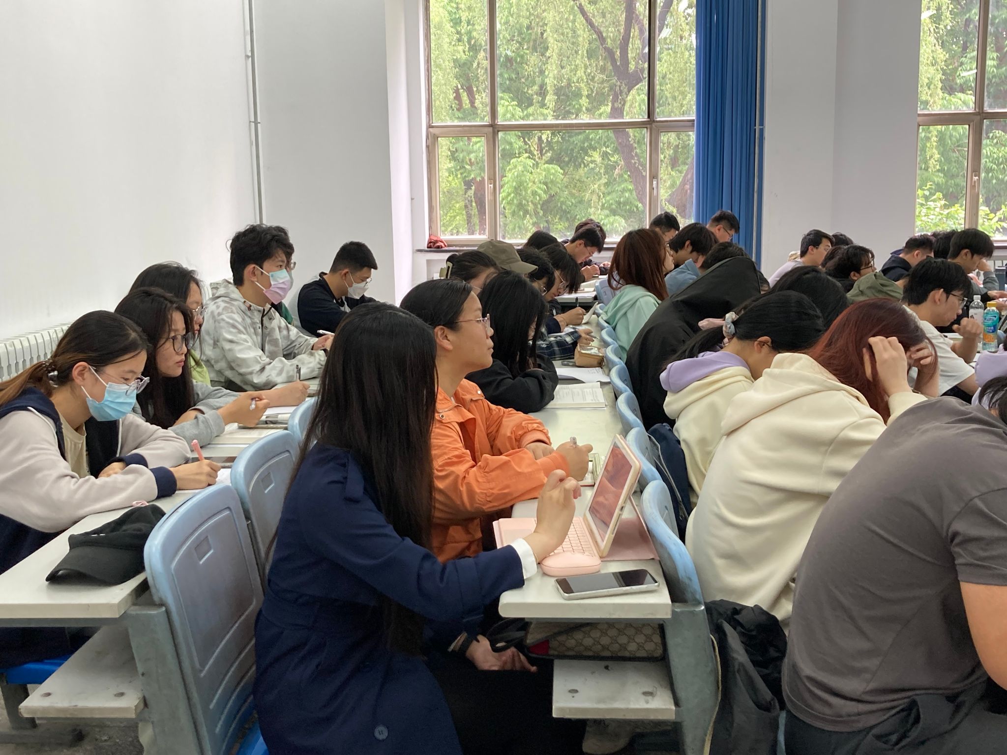 两位教师在教学过程中展示了良好的教风和出色的教学技能,教学环节安排合理、重难点层次分明,启发学生积极思考,互动性强,课堂气氛活跃,呈现出良好的课堂效果。黄博妍结合课堂讲授内容,提示学生在做课程设计、SIPT项目、毕业论文时要注意字母书写方式的统一性、公式表达的规范性等细节要点,促进学生思辨能力提升。孔庆明在课堂教学中充分挖掘课程中“爱国、创新、团结、合作”思政教育元素,将思政素材与知识点有机结合,达到思政教育“潜移默化”“润物无声”的效果。