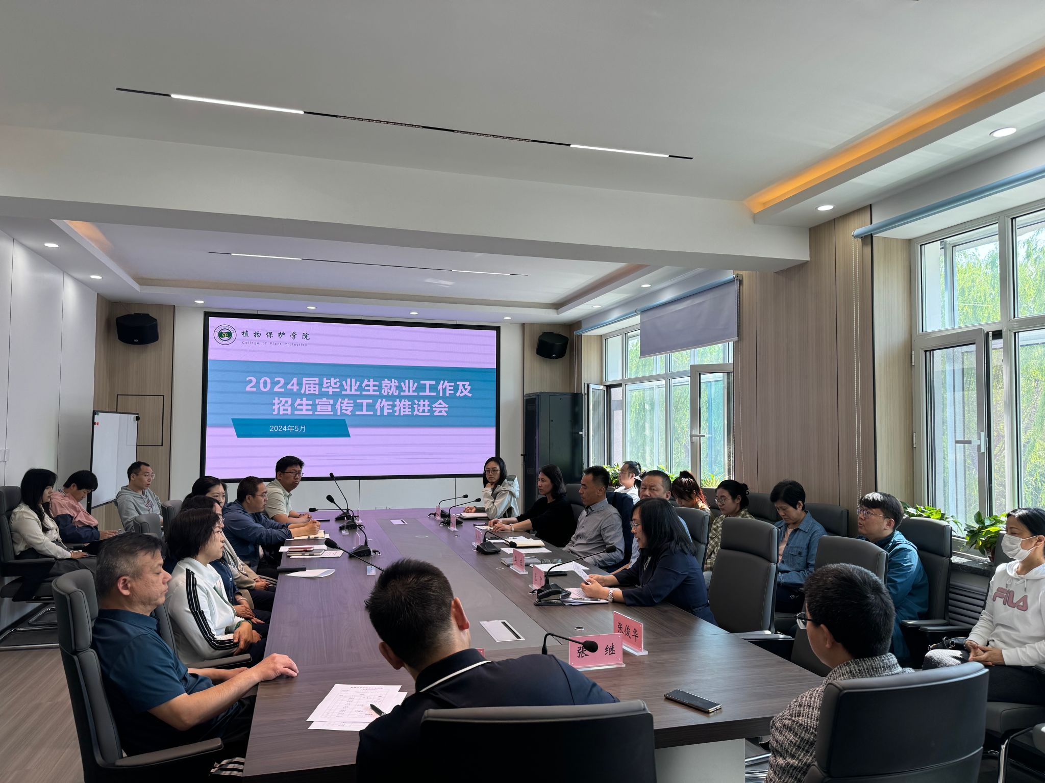 为深入推进学院就业和招生工作,做好学院全员全过程促就业百日冲刺活动,助力毕业生走稳就业路,5月29日下午,植物保护学院在327会议室召开2024届毕业生就业工作及招生宣传工作推进会。植物保护学院领导班子及全体教师参加会议。会议由学院副处级辅导员张贺主持。