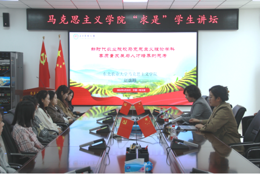 为深入贯彻落实习近平总书记关于推进马克思主义中国化时代化的重要论述,系统学习党的二十大精神,进一步理解和阐释党的创新理论,用党的最新成果武装头脑、指导实践,4月23日下午,学院举办“耕读·求是”学生讲坛,邀请学院副院长兼工会主席赵继颖副教授作题为《新时代农业院校马克思主义理论学科高质量发展与人才培养的思考》的专题报告。