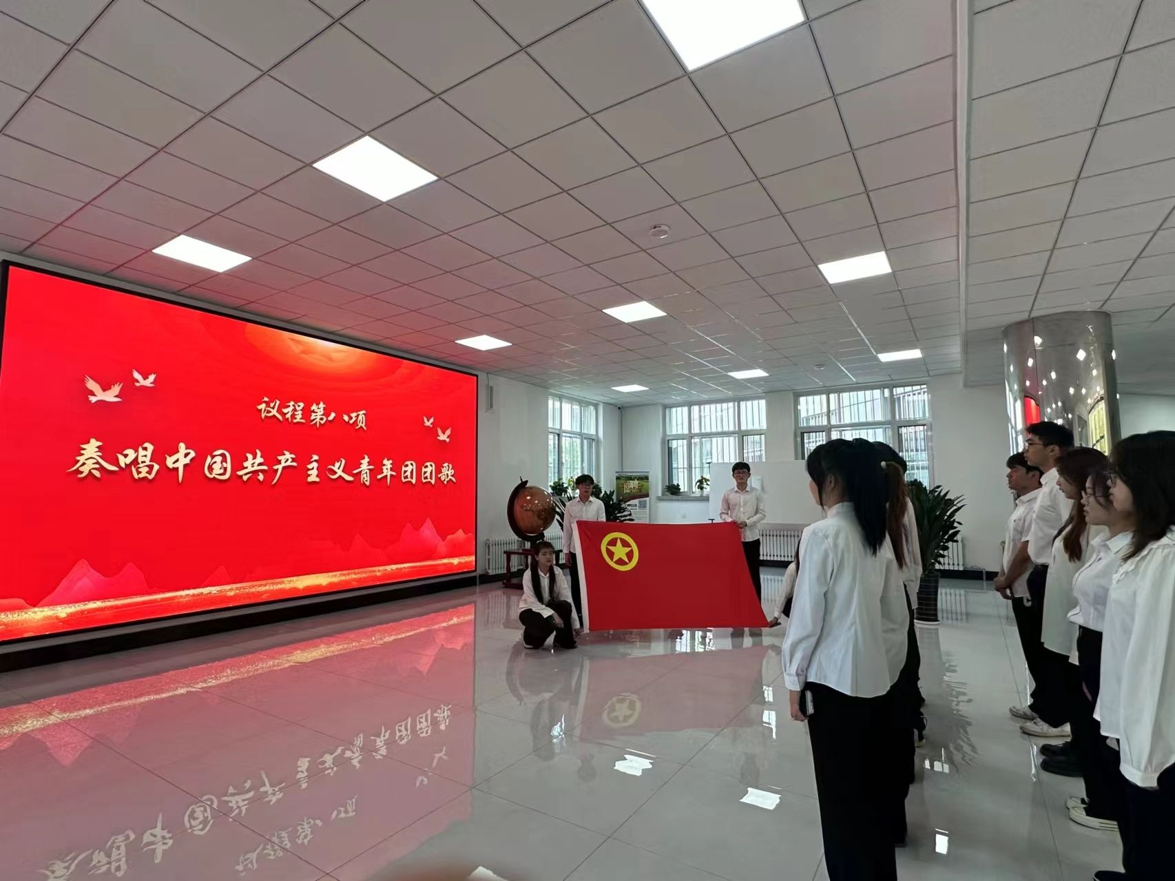 新团员在植物保护学院一楼面向团旗进行庄严的入团宣誓。