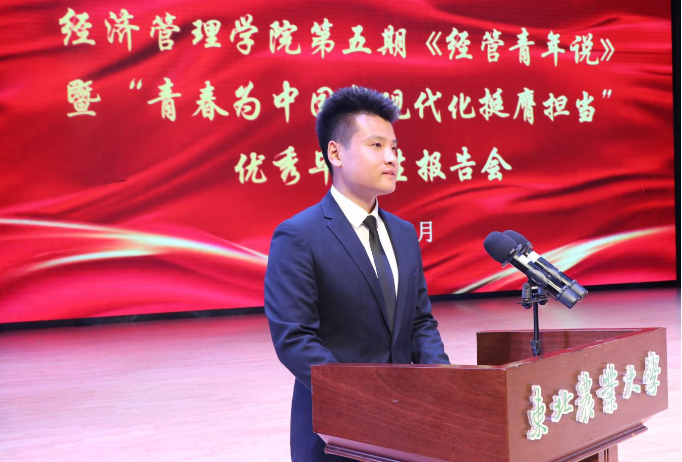 本期《经管青年说》邀请经济管理学院优秀毕业生代表会计2005班赵函、经管2081班陈宏博、人管2001班谭斯元、金融2003班高美晶、保险2002班操植五名同学结合在东农四年的求学经历,从理想信念、专业学习、科研创新、考研就业、实习实践等5个方面进行分享,搭建了朋辈沟通交流的桥梁,为同学们职业规划和未来发展指明了前行方向,勉励学弟学妹们要厚植爱国情怀,树立坚定目标,合理规划生活,总结学习方法,勇担强农使命,练就兴农本领,积极争取大创、科研、比赛、社会实践等机会,勇敢挑战,厚积薄发,在不同领域发光发热,同时也向母校、师长、学弟学妹们送出了自己的祝福。