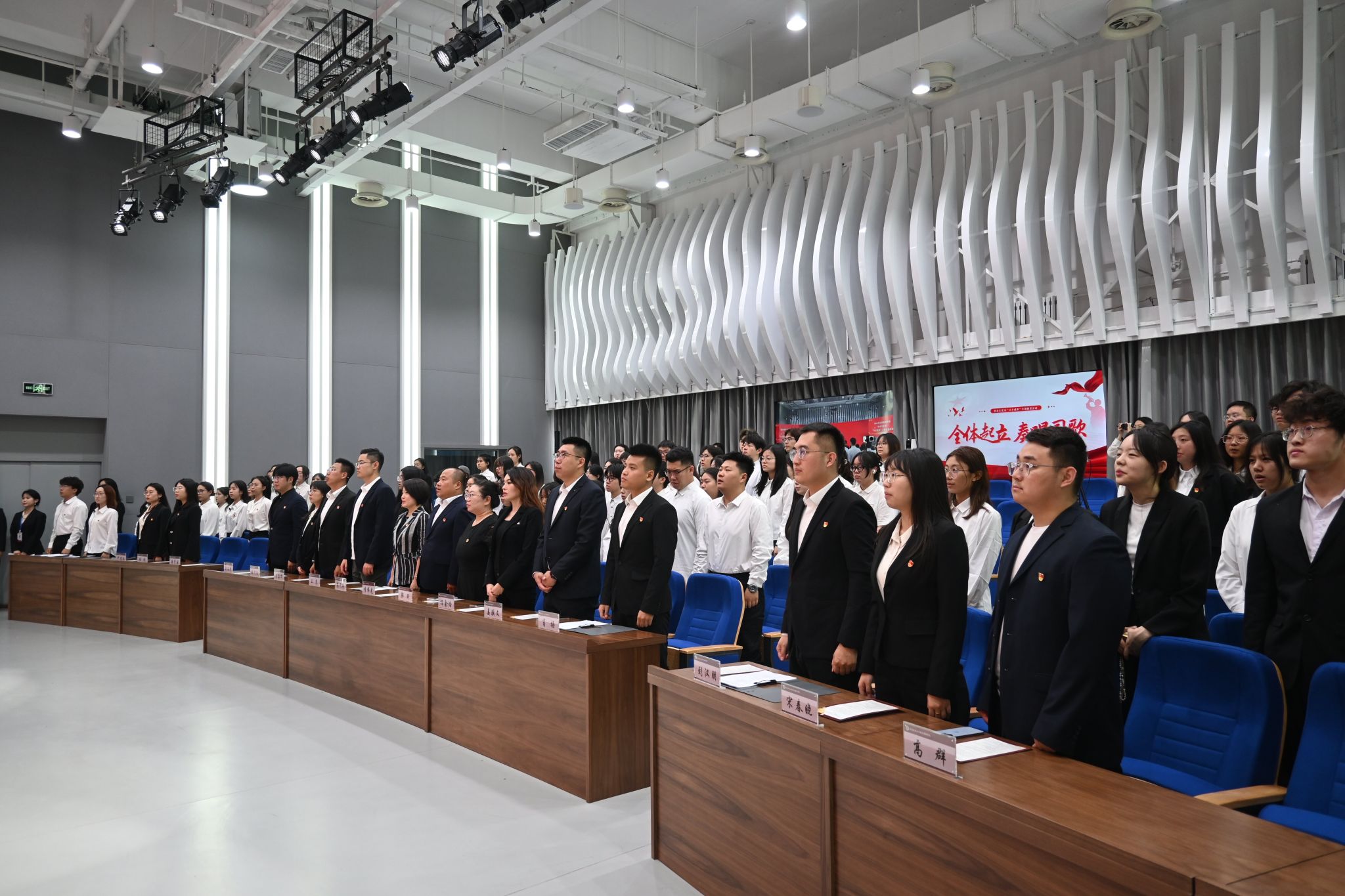 本次活动在庄严的国歌中拉开序幕。全体与会师生起立,齐唱国歌。