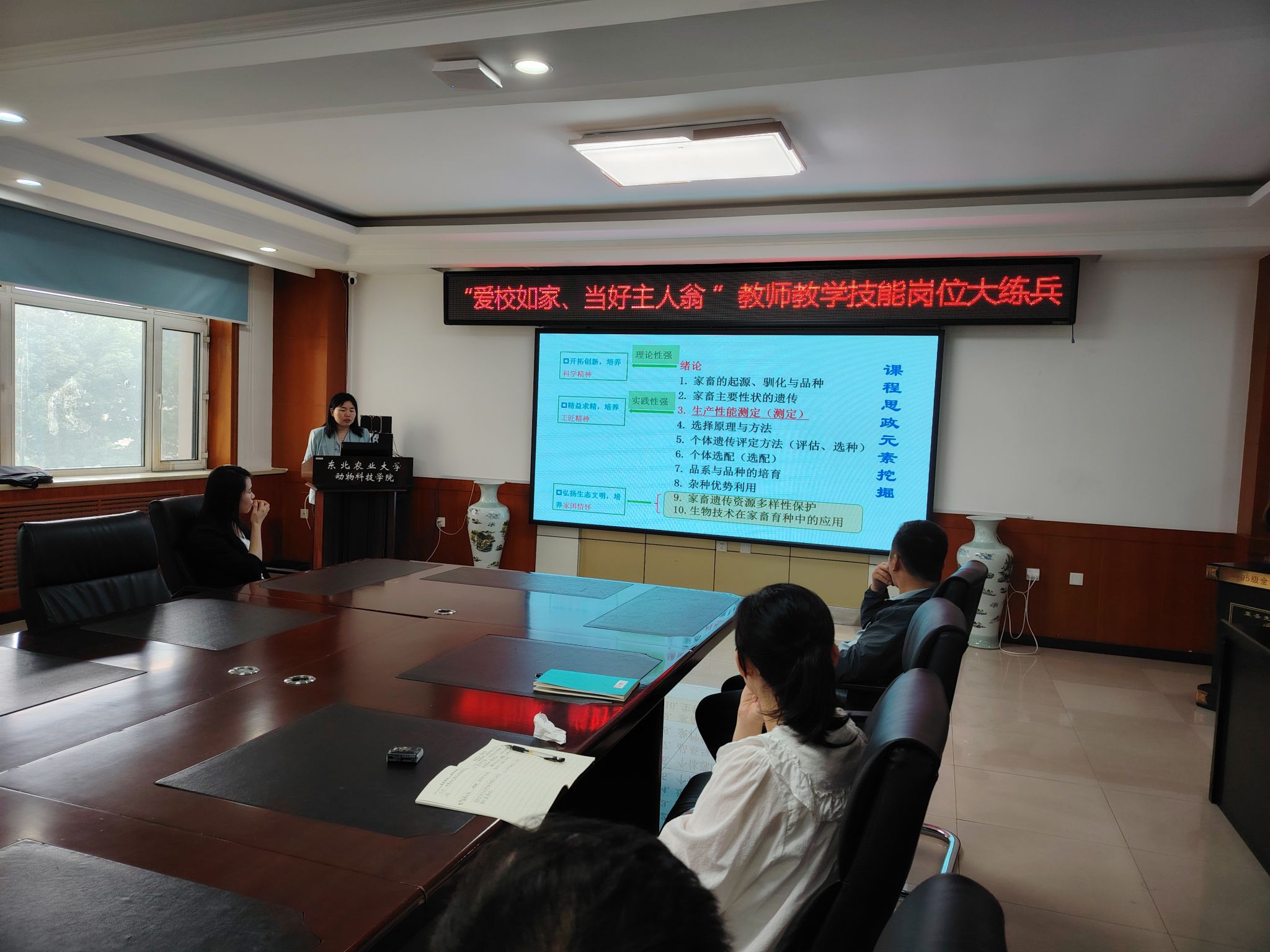 各课程项目负责人围绕思政元素有效融入课堂教学、创新课程思政教学模式、丰富案例资源、彰显科学精神、人文情怀、逻辑判断和价值取向,从项目总体进展、阶段性成效及后期建设计划等方面进行汇报,以学科、专业历史沿革为切入点,引入学院老一辈科学家艰苦奋斗、勇于奉献的精神和严谨的科学态度,在课堂上引导学生围绕“爱校”“爱院”等方面展开交流。课程项目负责人表示,通过课程思政元素的植入,增强了学生对科学家刻苦专研精神的敬佩和对畜牧业现代化发展的认识,激发了学生的家国情怀和爱国主义情愫,强化了学生的文化自信和民族自豪感。