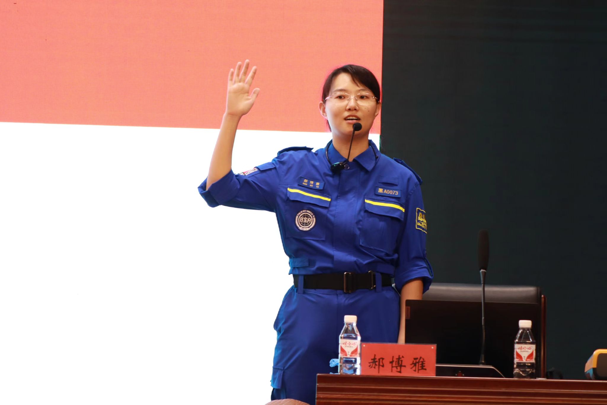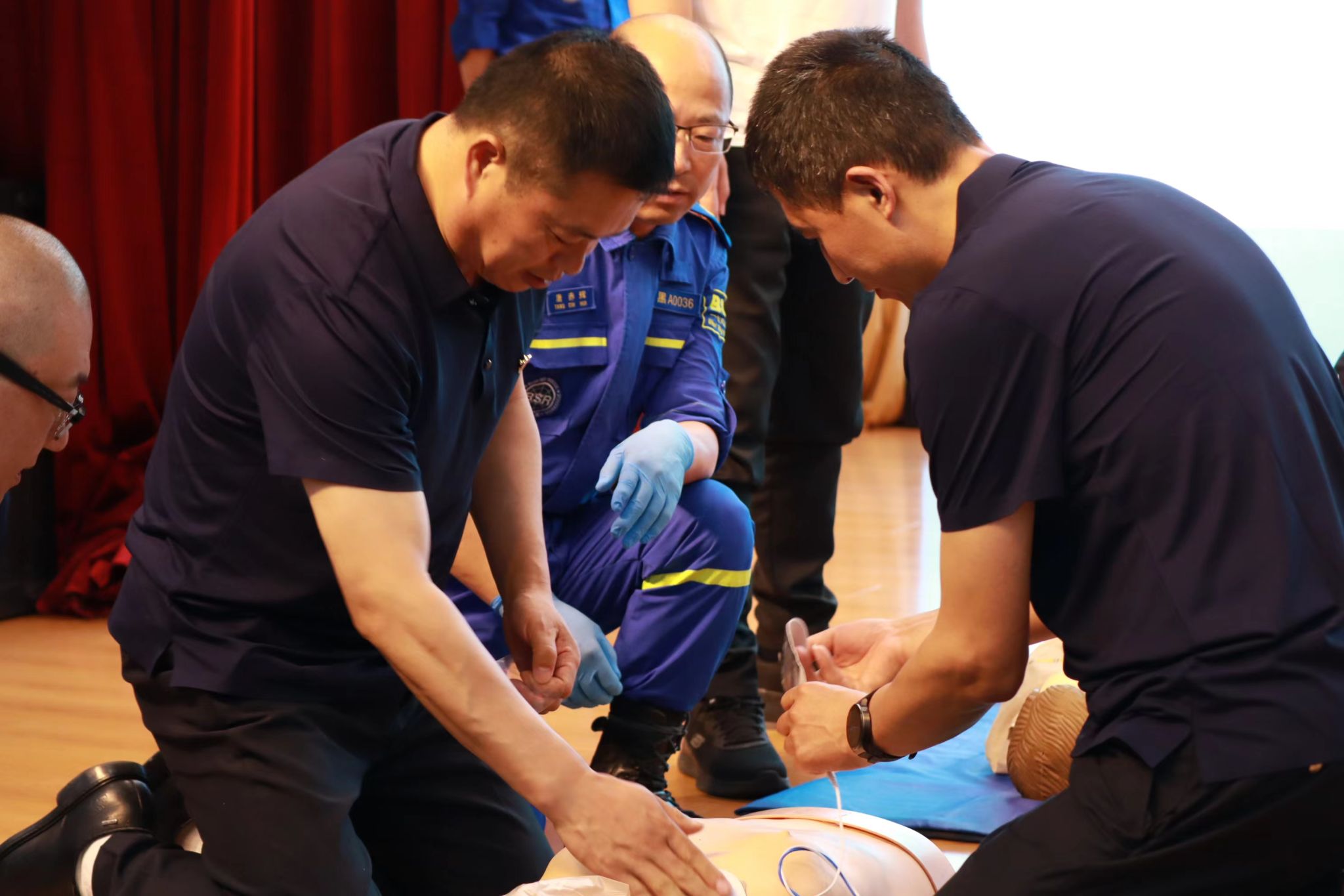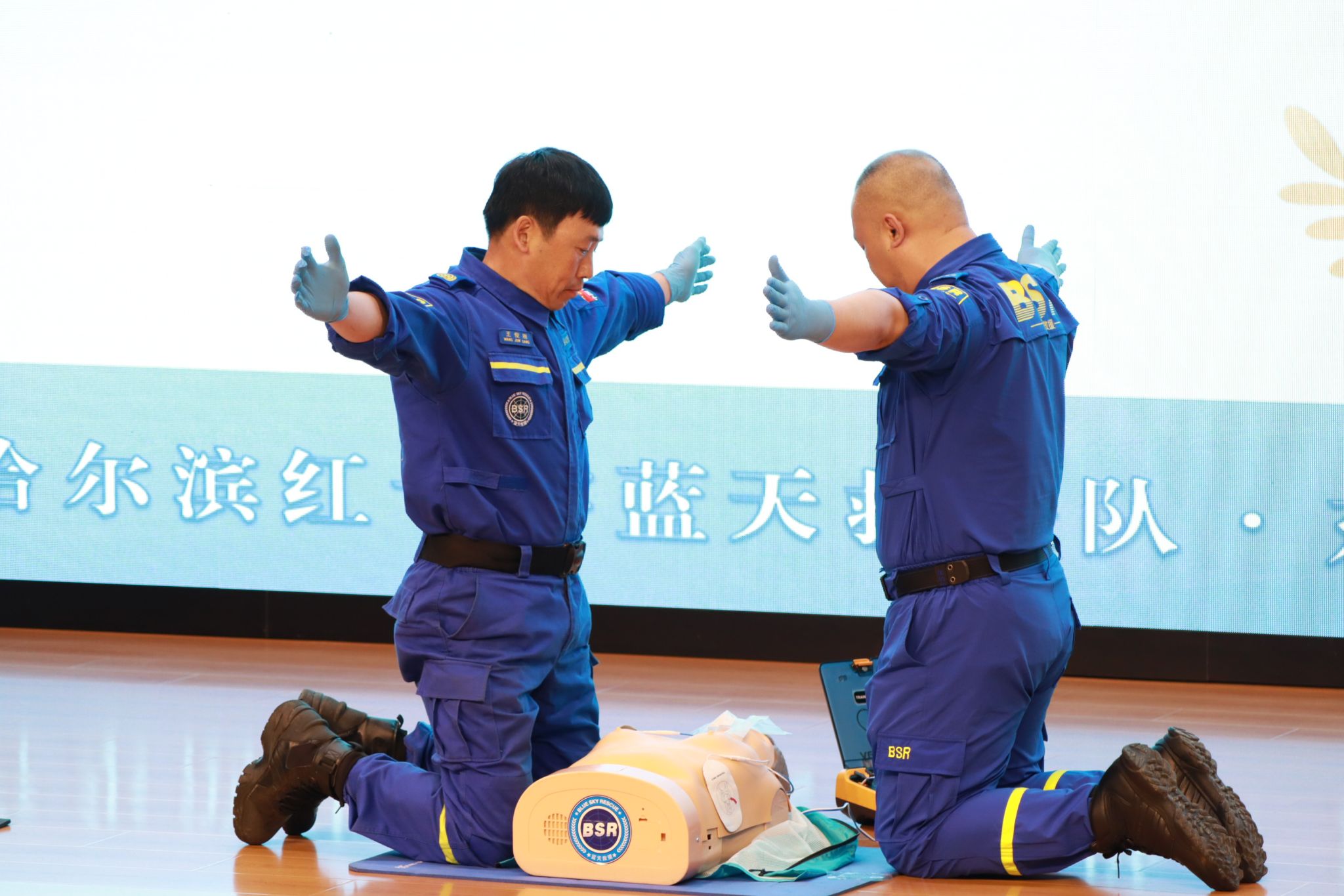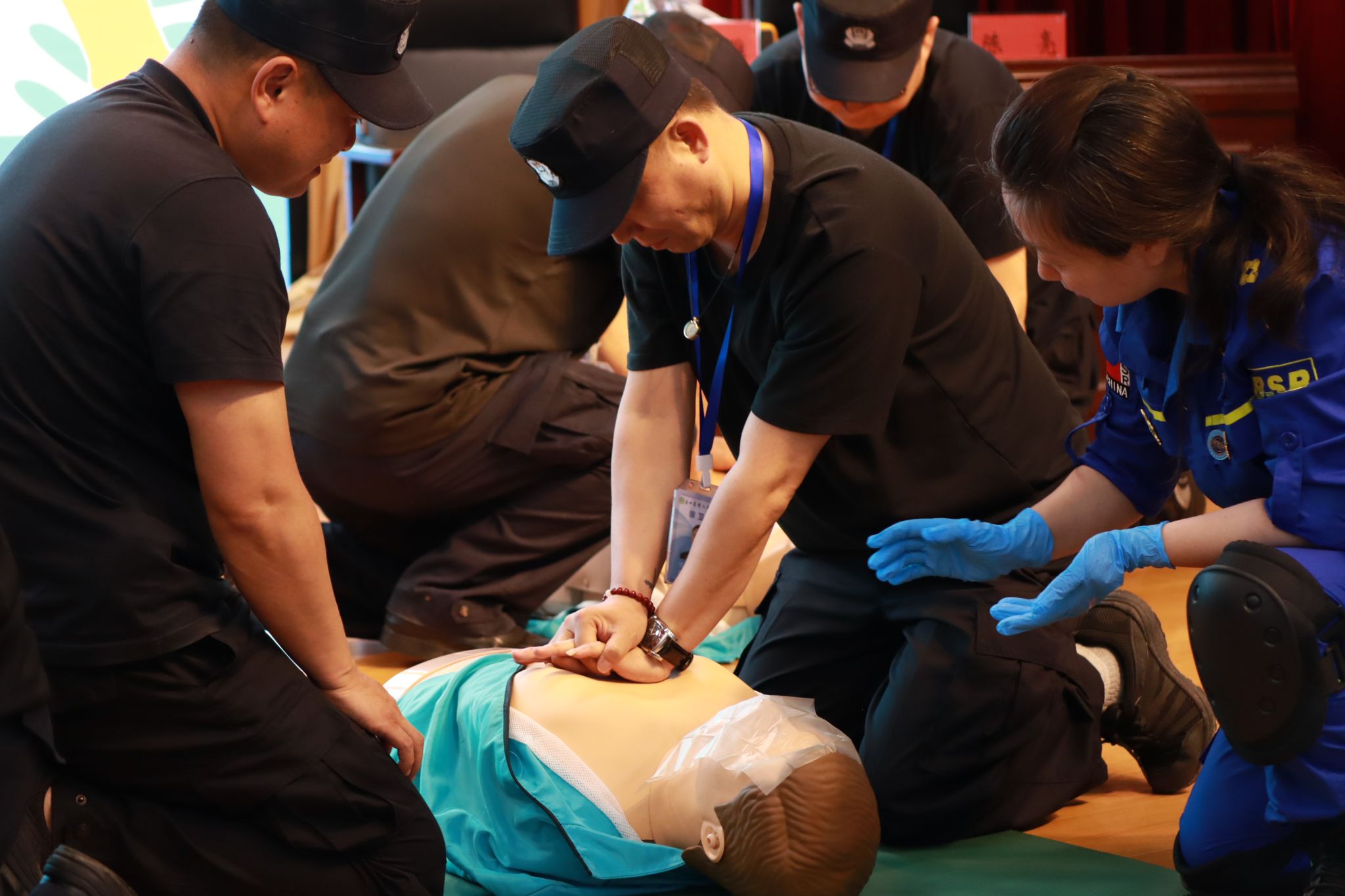 郝博雅从心搏骤停及生存链、心肺复苏的方法、自动体外除颤器的使用做了深入讲解,有针对性地讲授了异物梗阻、突发疾病预防等急救知识。通过实例讲解,示范操作,利用人体模型等器材进行实操演练,培训师手把手指导、提示要点,纠正不规范动作,力求在操作过程中每一个动作都能标准、到位,使大家获得精准的急救技能。