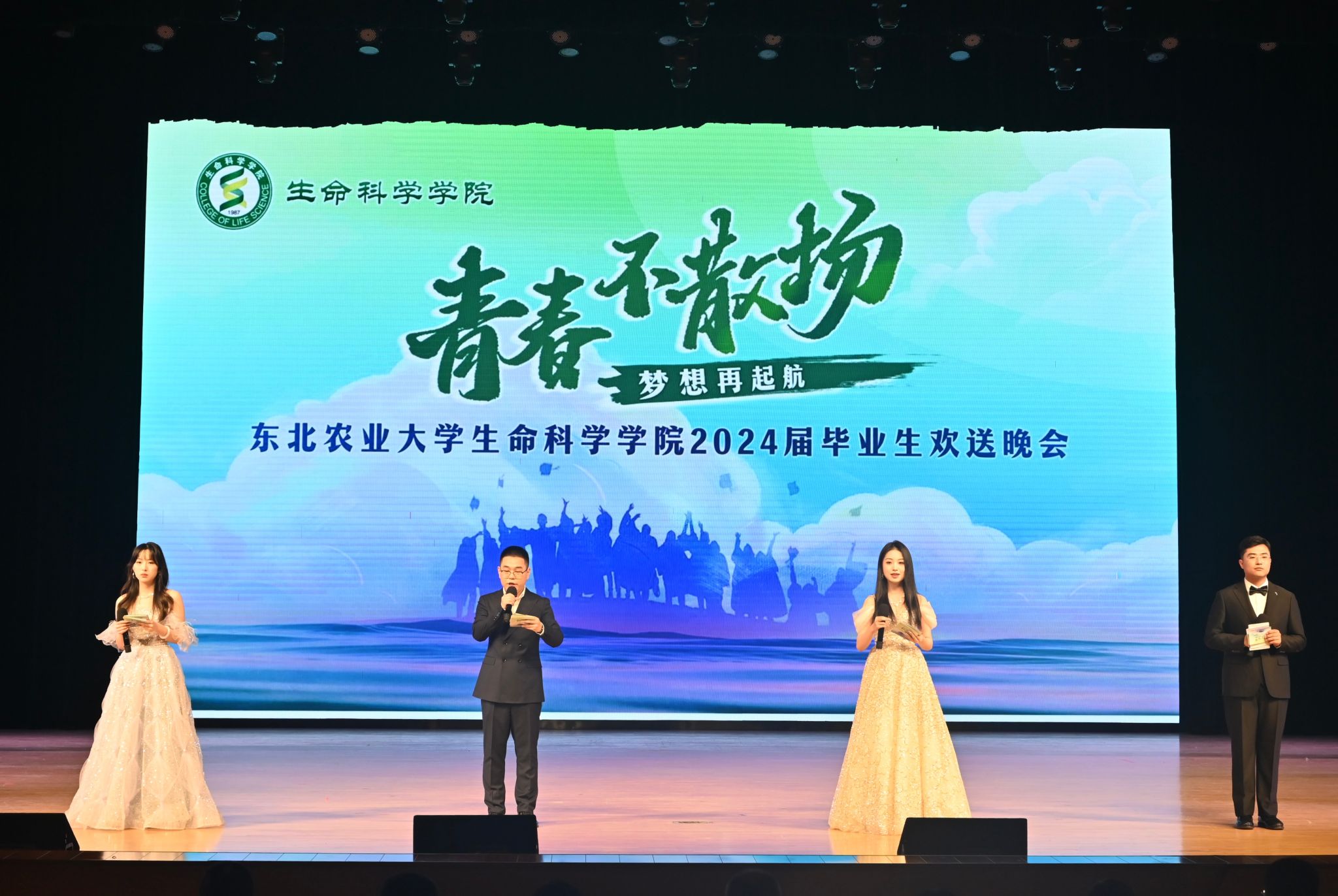 青春之席,终有一别。为进一步做好2024届毕业生文明离校教育和暖心服务工作,增强学生爱校情怀,营造积极向上、温馨和谐的校园文化氛围,6月12日晚,生命科学学院在学校音乐厅隆重举办“青春不散场 梦想再起航”2024届毕业生欢送晚会,学院党委书记施喜军,院长武小霞,学院党委副书记孙珠红,副院长柏锡、李剑虹,各系党支部书记、系主任、本科生班主任以及全体辅导员出席活动,2024届毕业生和在校生代表参加活动。