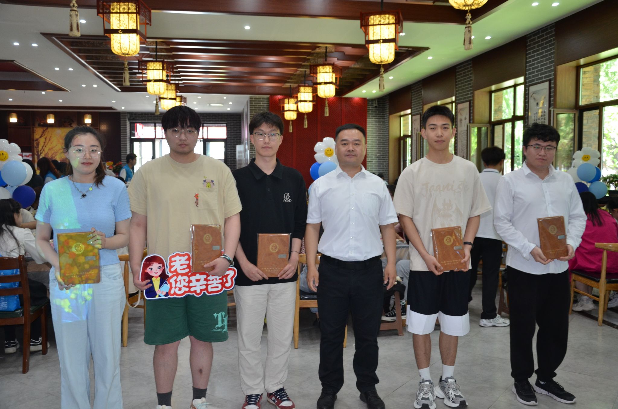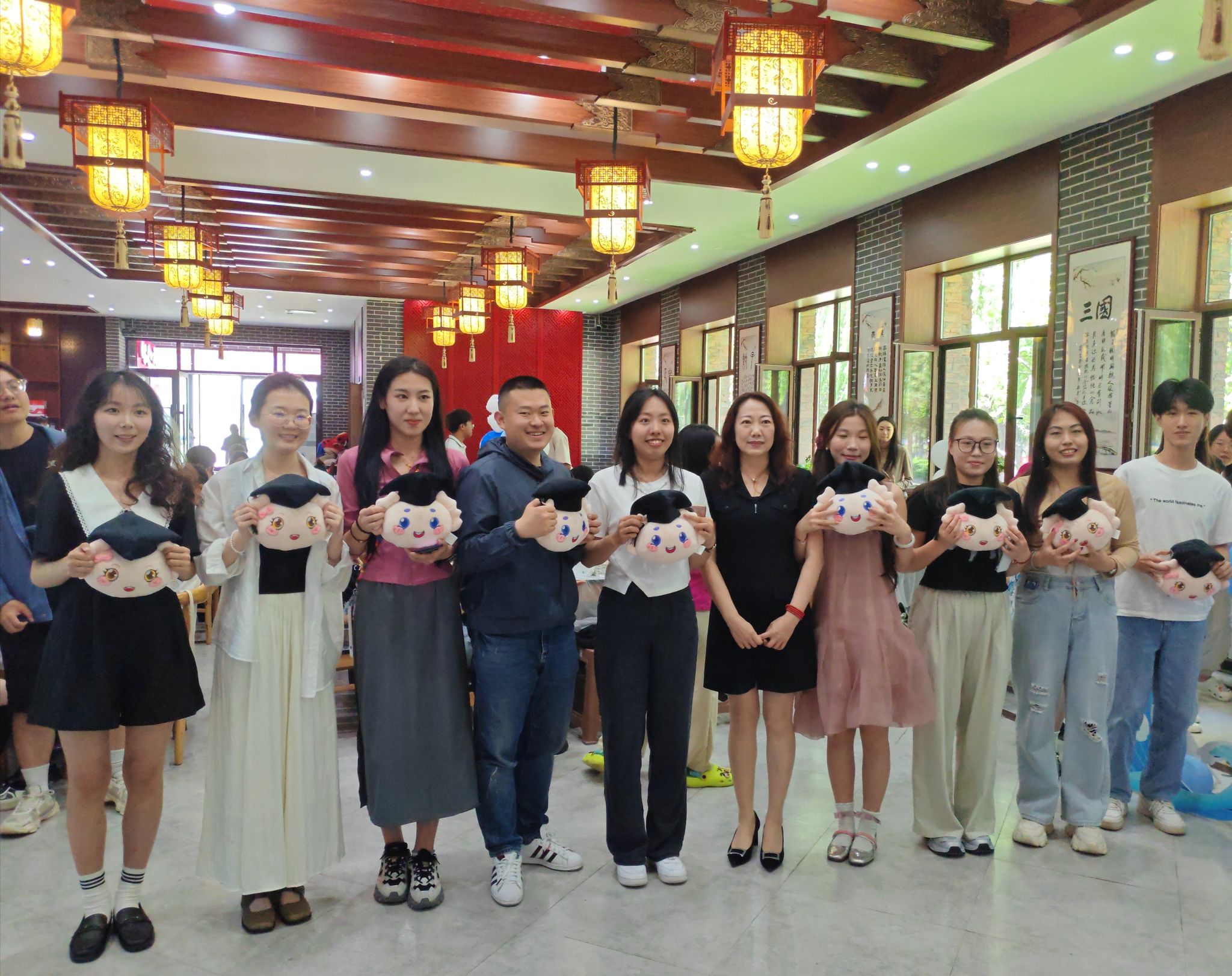 在抽奖环节中,学院精心准备了毕业季定制笔记本、毕业纪念玩偶等奖品,获奖毕业生们脸上都洋溢着幸福的笑容,现场氛围浓烈。抽到与老师合照的毕业生们欢呼雀跃,满怀感激与期待,伴随相机的快门声响起,留下了这一刻珍贵的记忆。