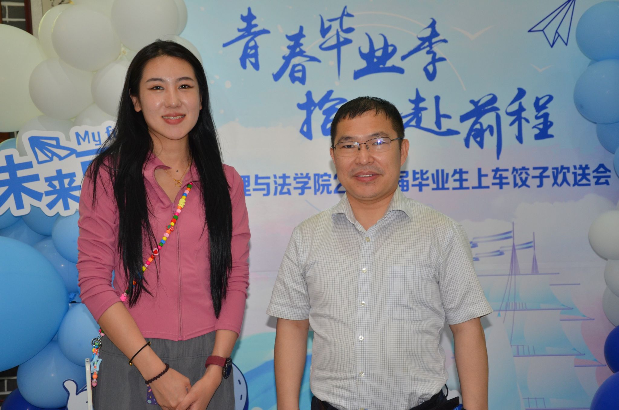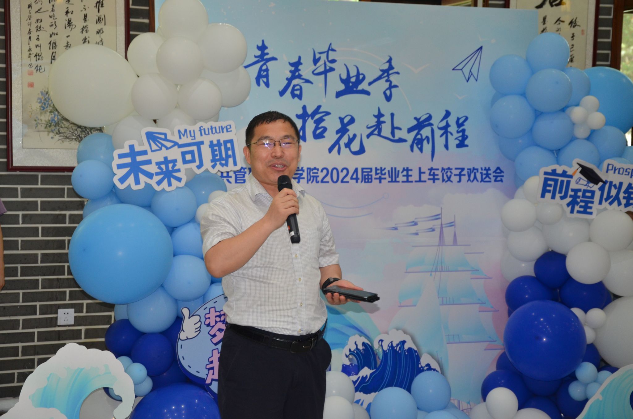 公共管理与法学院“青春毕业季,拾花赴前程”欢送活动于6月17日中午在饺子园举行。公共管理与法学院党委书记闫清波,院长杜国明,党委副书记马涛,副院长程镝,学院各系主任、党支部书记、研究生导师代表、专业教师代表,全体辅导员老师及260余名毕业生参加活动。