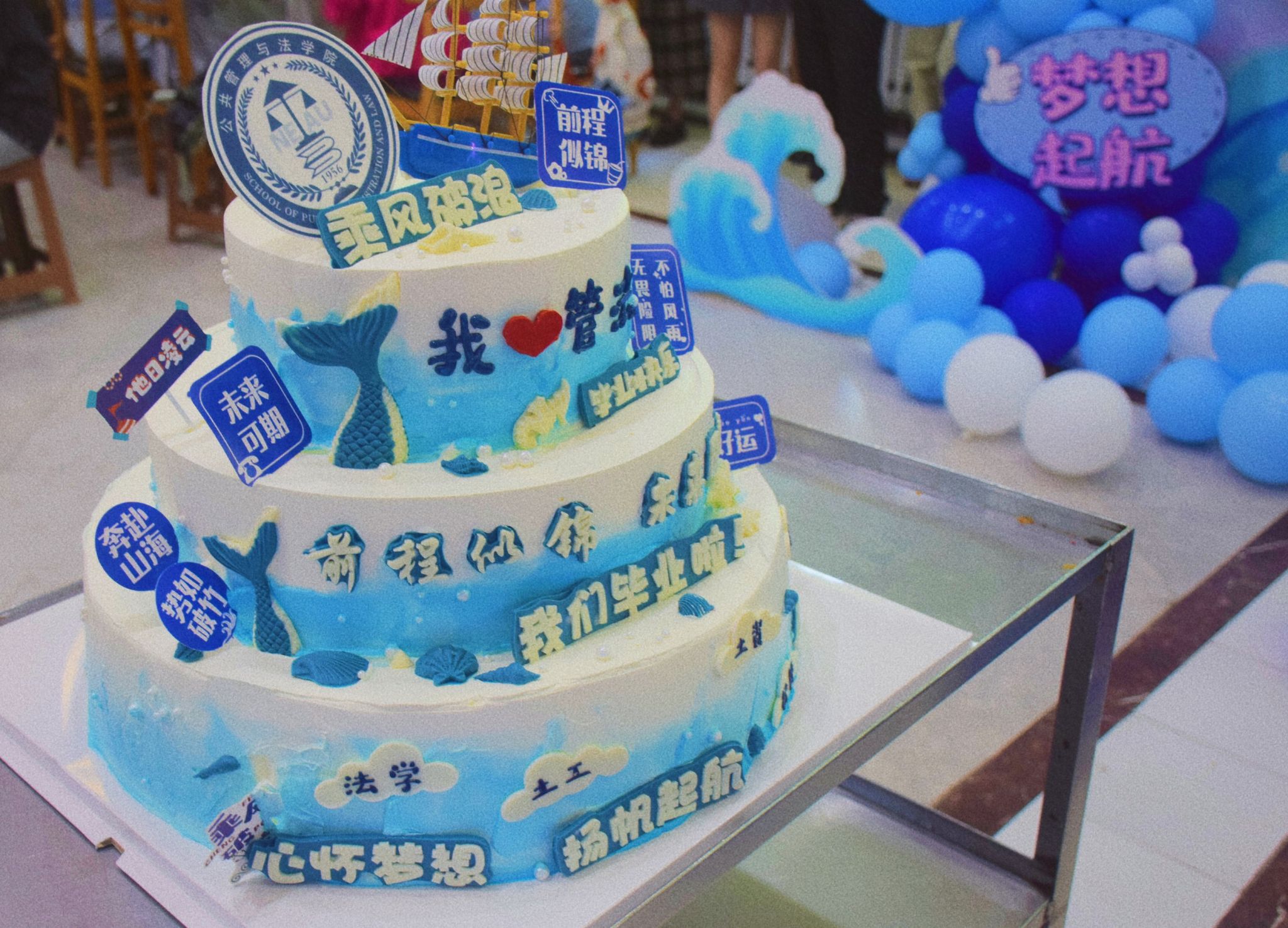 学院特别定制的毕业纪念蛋糕在师生们的共同见证下被缓缓切开,象征着毕业生们即将开启的甜蜜新生活。