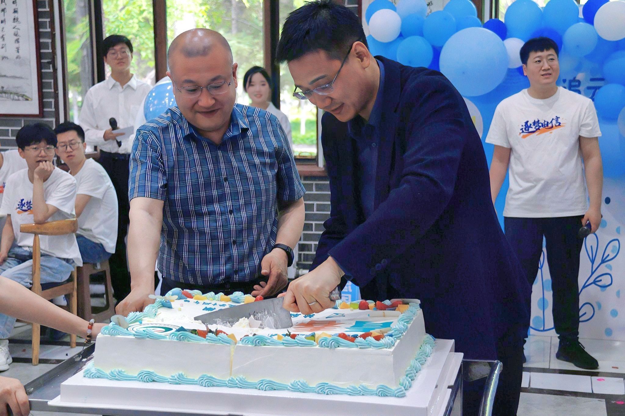 学院为毕业生定制了专属毕业纪念蛋糕,仪式感拉满。万庆生与戴百生一同切分蛋糕,以此祝愿同学们一帆风顺,前程似锦。