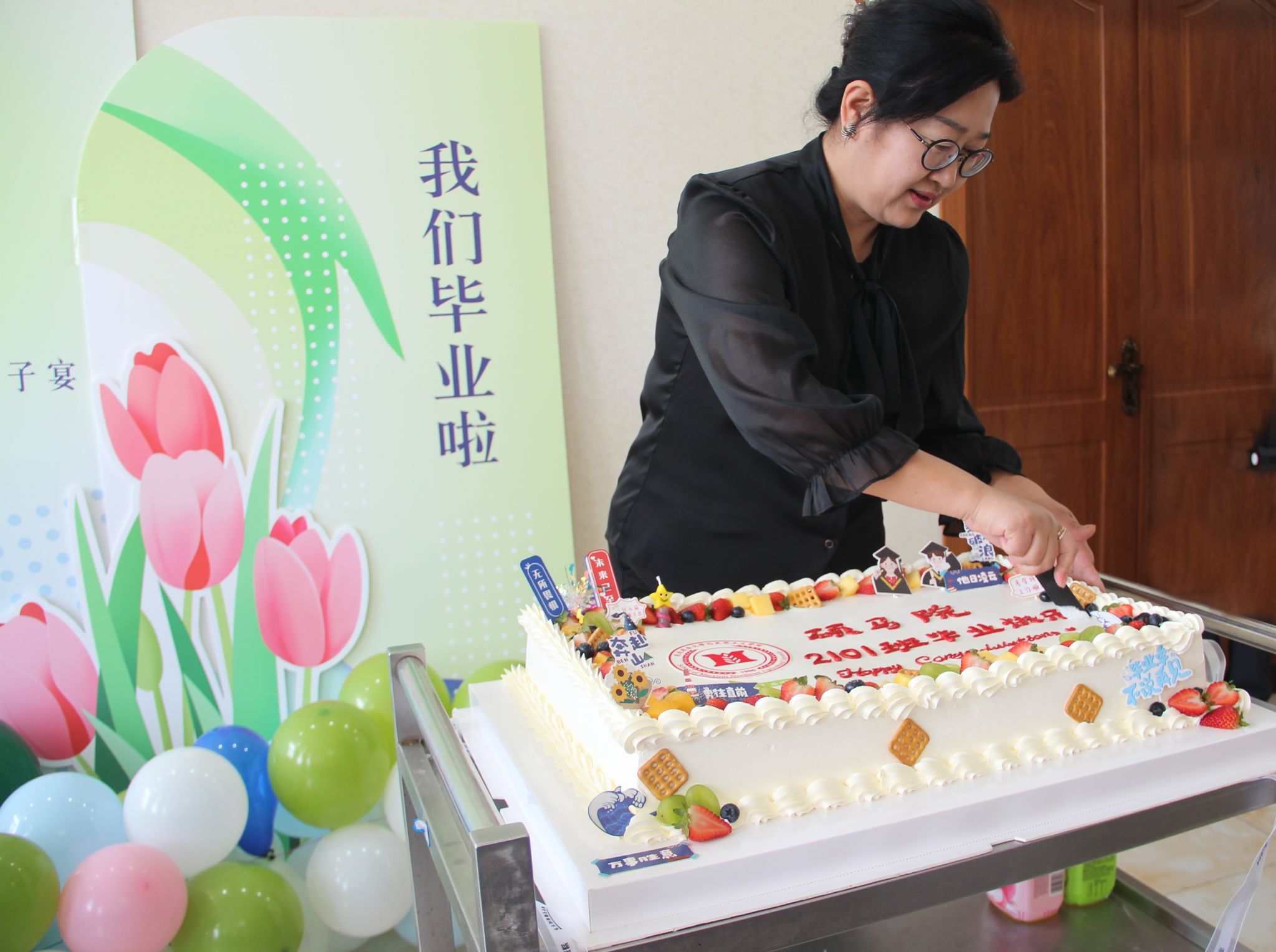 随后,赵继颖代表全院师生切蛋糕,将最美好的祝福送给每一位即将毕业的同学,祝愿他们能够在未来的岗位上闪闪发光。