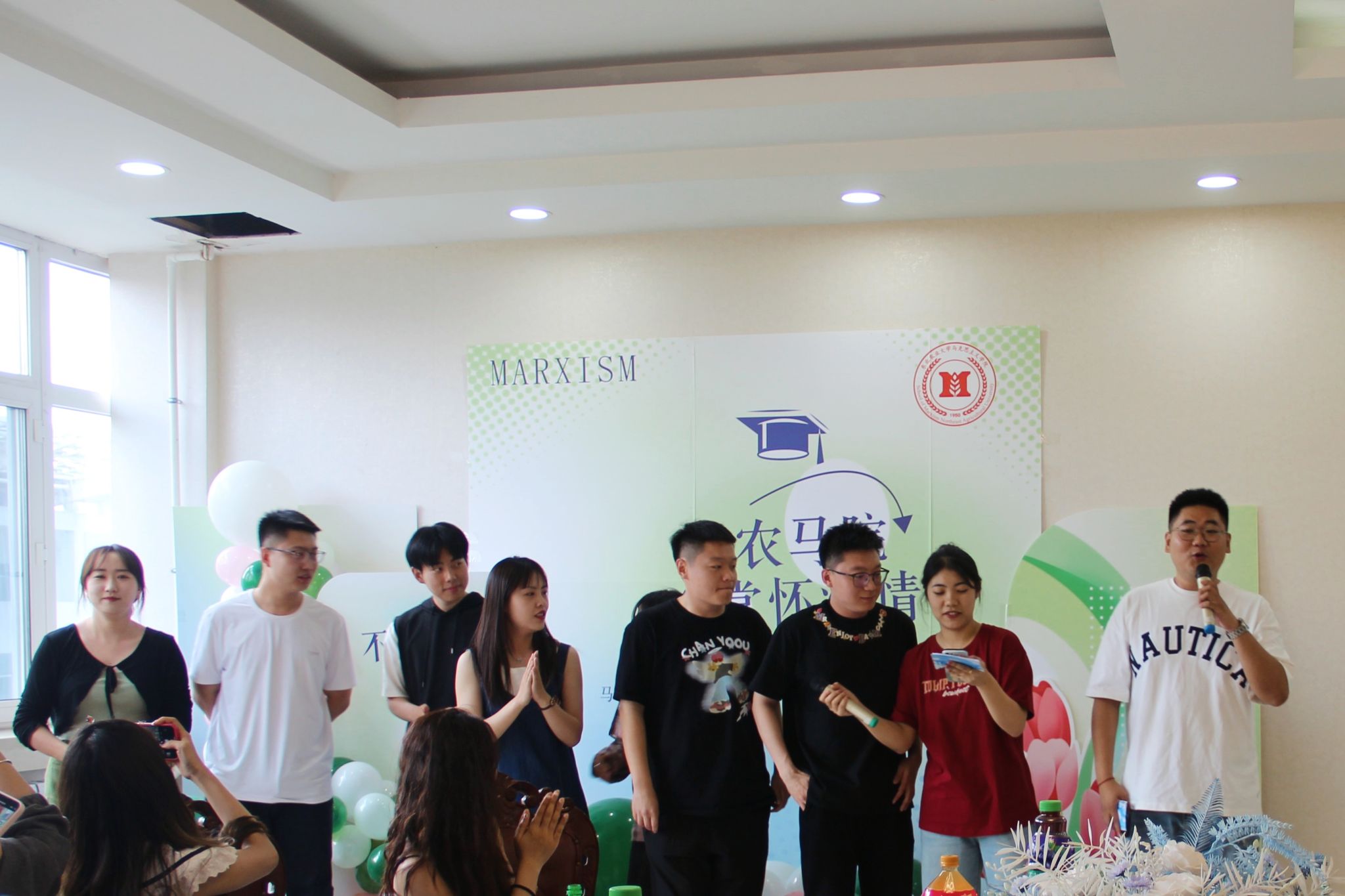 全体研一同学合唱《光阴的故事》,对即将毕业的师兄师姐表达不舍之情。随后,全体师生观看了学院精心制作的2024届毕业生毕业视频,记录和怀念在马院共同度过的点点滴滴。研一师弟师妹们向即将毕业的师兄师姐送上最真诚的祝福,希望师兄师姐能在未来的岗位中大展宏图。全体研一学生用一束束鲜花向毕业生师姐们送去最诚挚的愿景,愿师兄师姐们能“闲看庭前花开花落,漫随天外云卷云舒”。