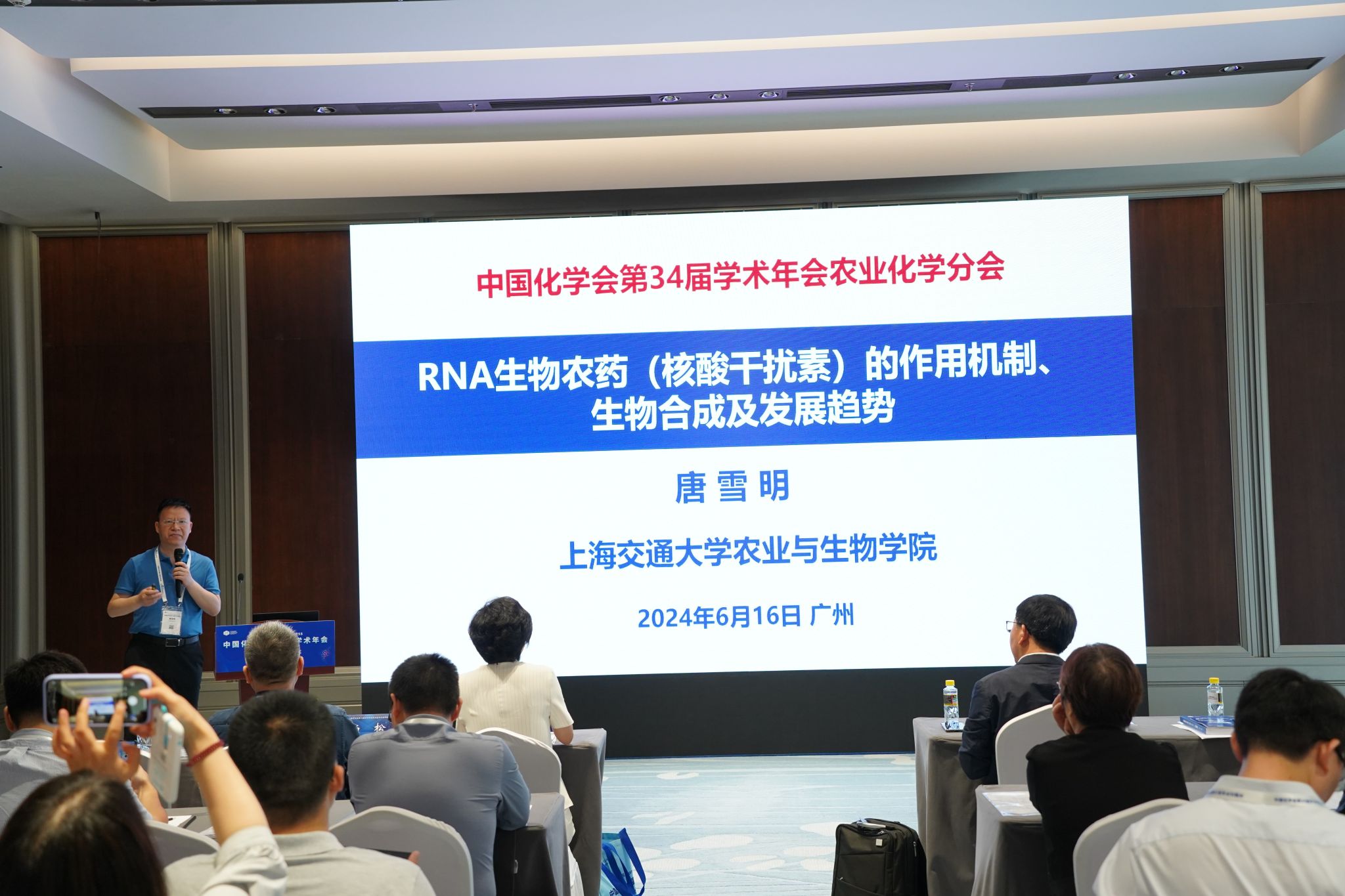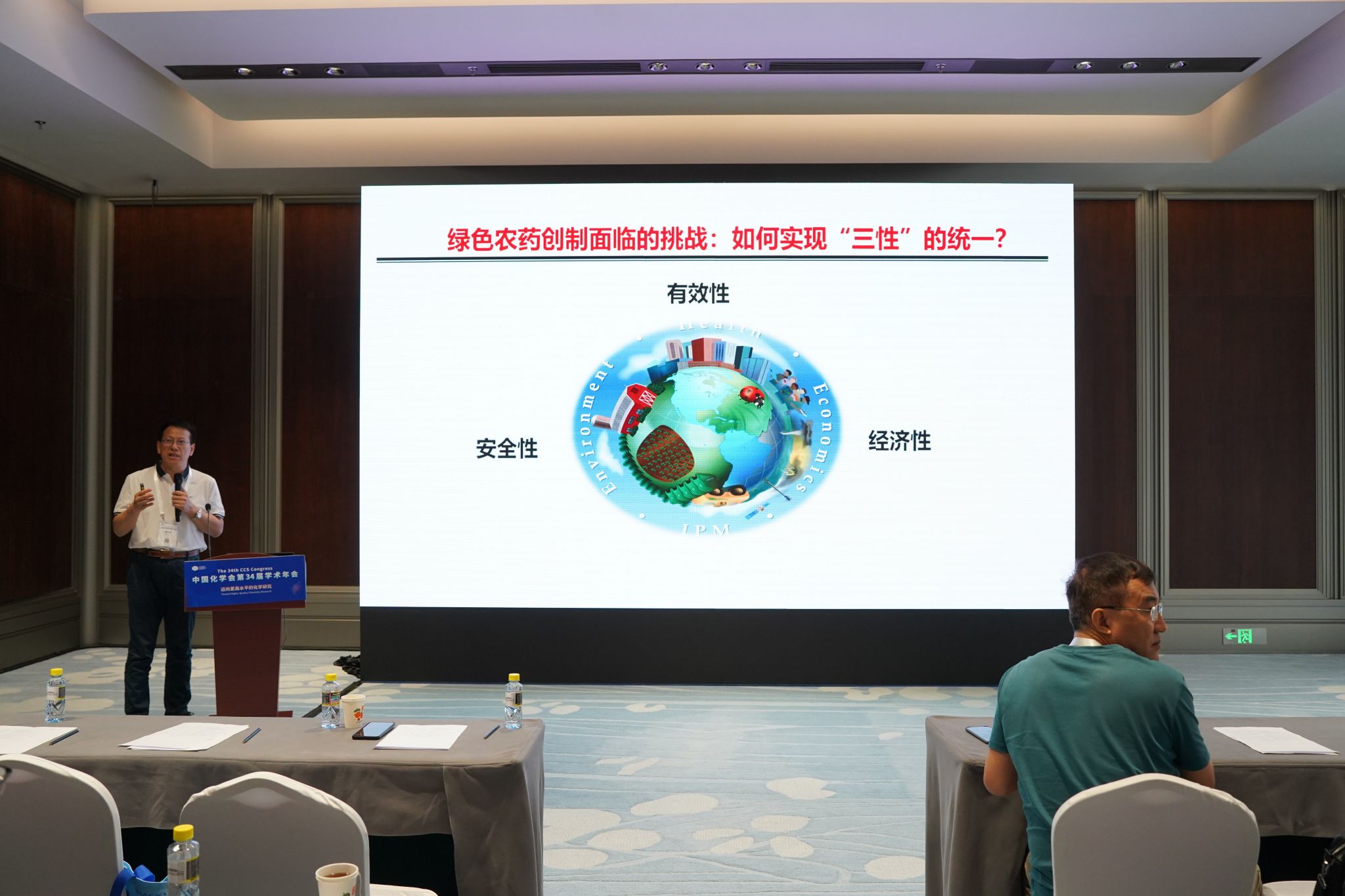 中国工程院院士、中国化学会农业化学专业委员会主任、华东师范大学校长钱旭红出席了大会并作了题为“生物化学农药:现状与未来”的大会主题报告。报告从生物化学农药国内外源起、现状和类别、问题和展望、研究力量等多个角度讲述了生物化学农药的发展成果,为与会者提出了新的研究方向和研究思路。