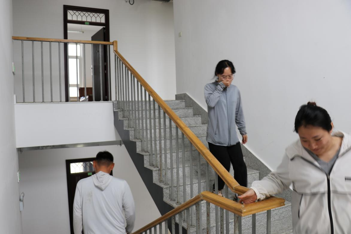 王爱众针对实验实习基地门卫、更夫、厨师、宿管、农机人员等不同岗位工作特点讲解消防安全注意事项并对消防逃生疏散演练流程进行指导。演练过程中,随着警报声响起,所有人员按照规划撤离路线快速、有序疏散至安全区域。