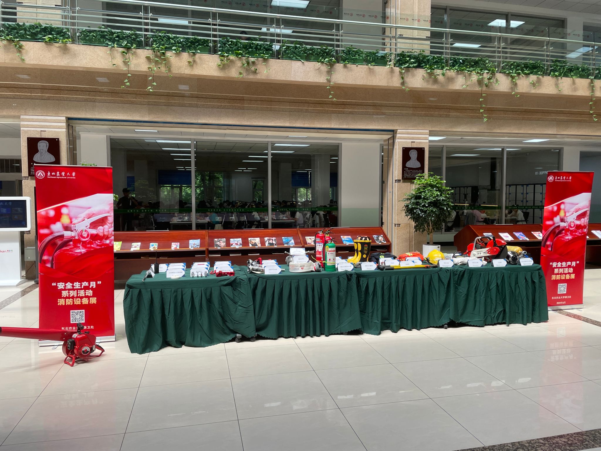 今年6月是第23个全国“安全生产月”,按照国务院安委会办公室和应急管理部《关于开展2024年全国“安全生产月”活动的通知》(安委办〔2024〕3号)及黑龙江省安委会办公室《关于印发黑龙江省2024年“安全生产月”活动实施方案的通知》(黑安办〔2024〕56号)部署,为进一步普及消防安全知识,切实提高师生的消防安全意识和火灾防御能力,6月25日,保卫处在图书馆大厅开展消防设备展示与讲解活动。