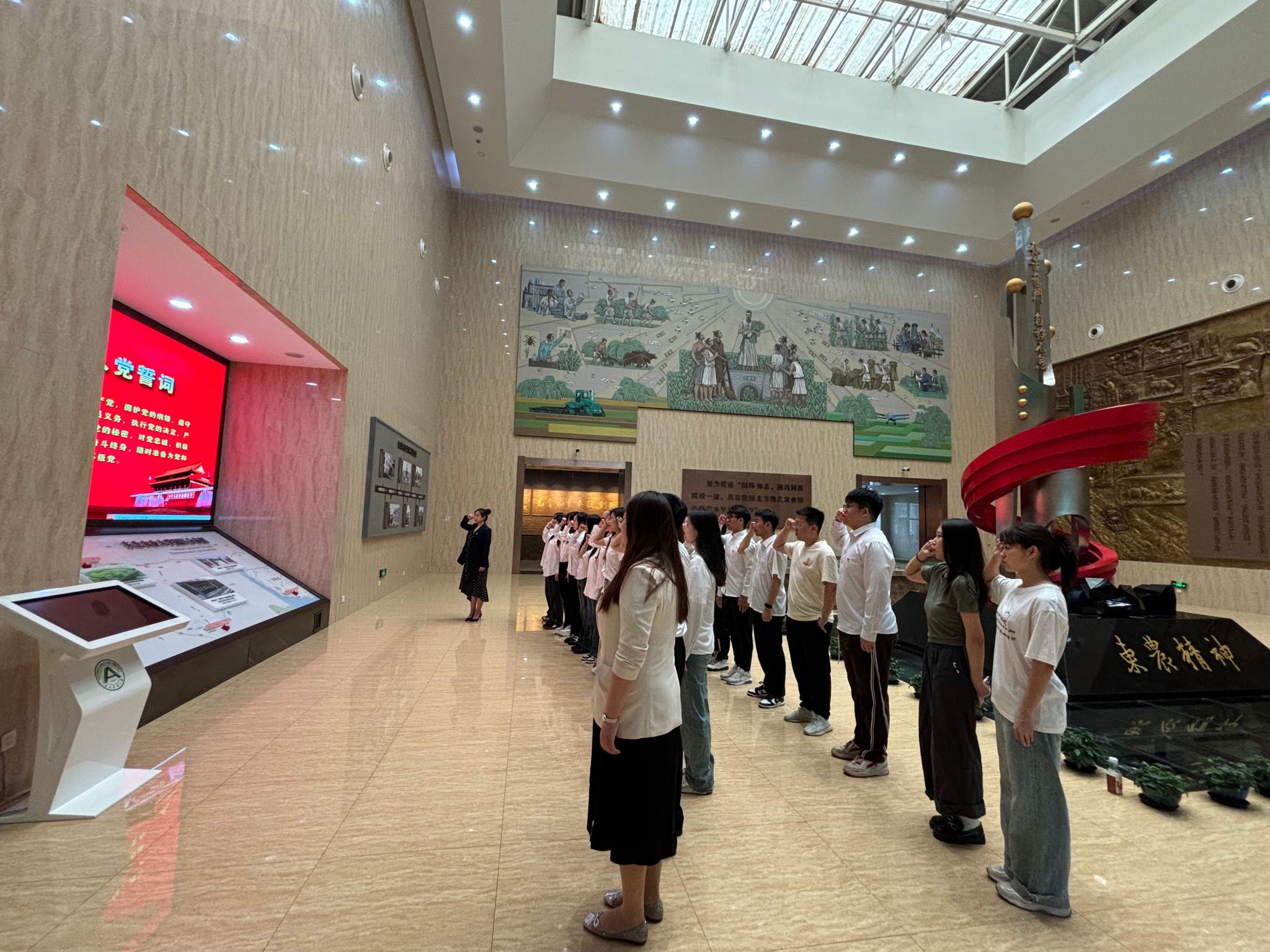 6月20日,在毕业生党员离校前,学院组织毕业生党员走进校史馆参观,学院党委副书记许辉带领全体毕业生党员们重温入党誓词,以“重温入党誓词”为在校期间最后一节党课的形式,助力毕业生党员回忆入党初心,加强纪律意识,用党的光辉照亮前路,用东农精神助力前行。在生动的校史照片和珍贵的校史展品中,毕业生党员又一次感悟着东农人“艰苦奋斗、自强不息”的磅礴力量。